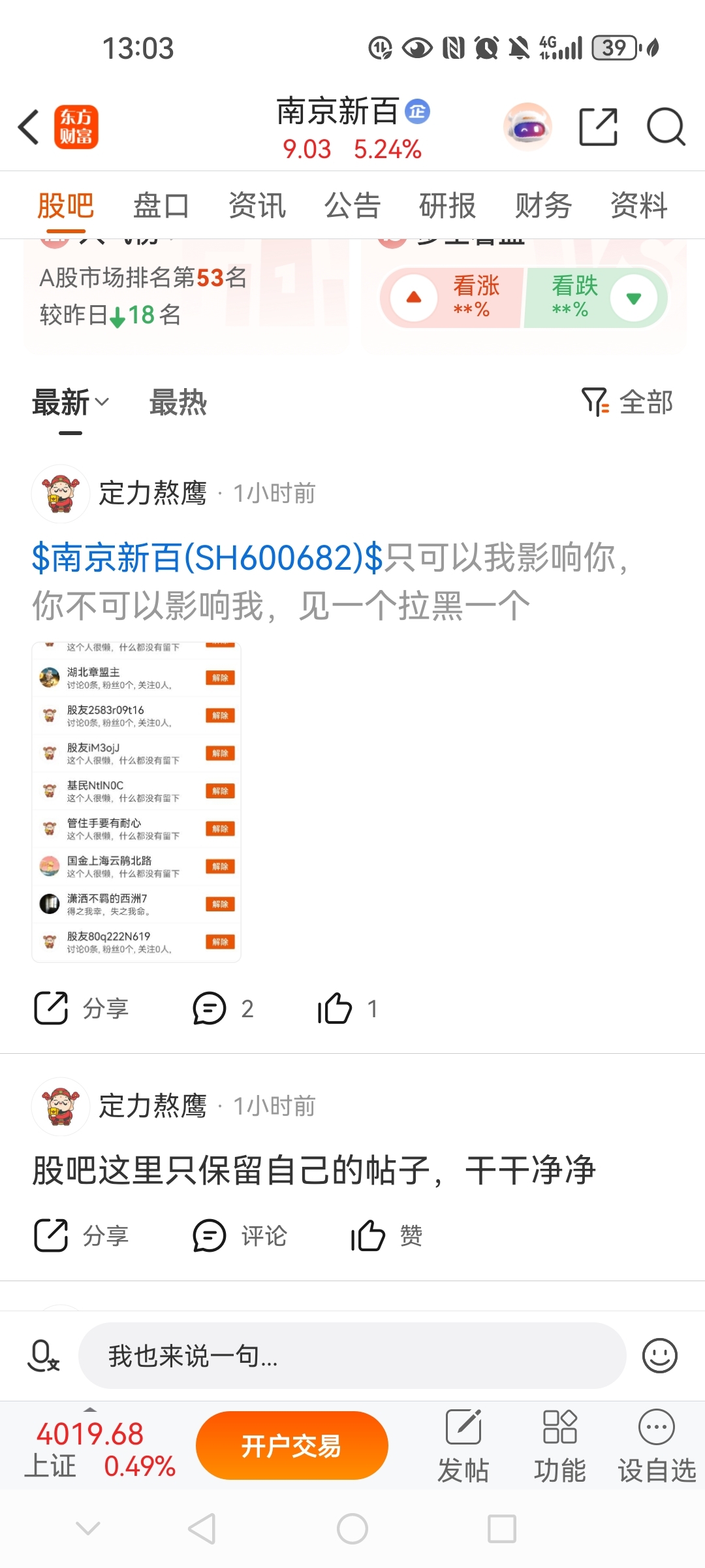 今天股吧里所有发帖子和评论的,全部拉黑。见一个拉黑一个。