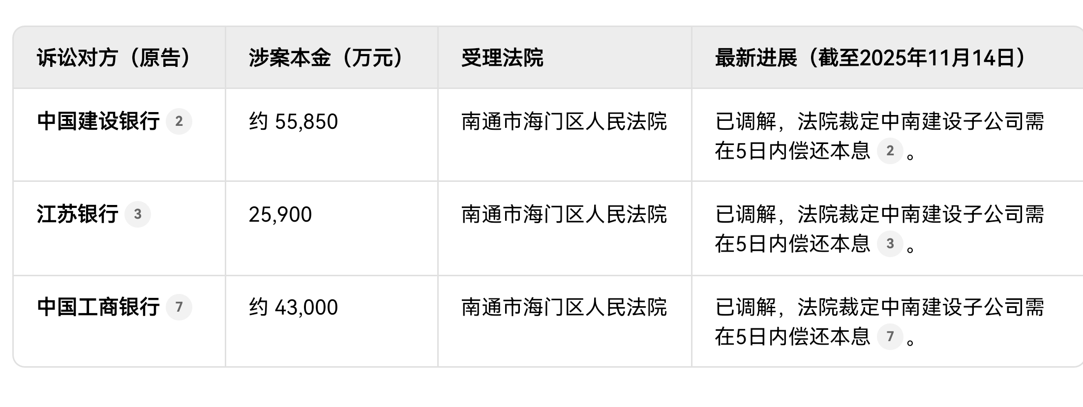 巨额债务逾期:上述诉讼所涉的银行借款均已到期,但公司无力偿还,导致银行通过法律途径追讨。例如,与建设银行的纠纷涉及三笔借款,本息合计超过5.7亿元。