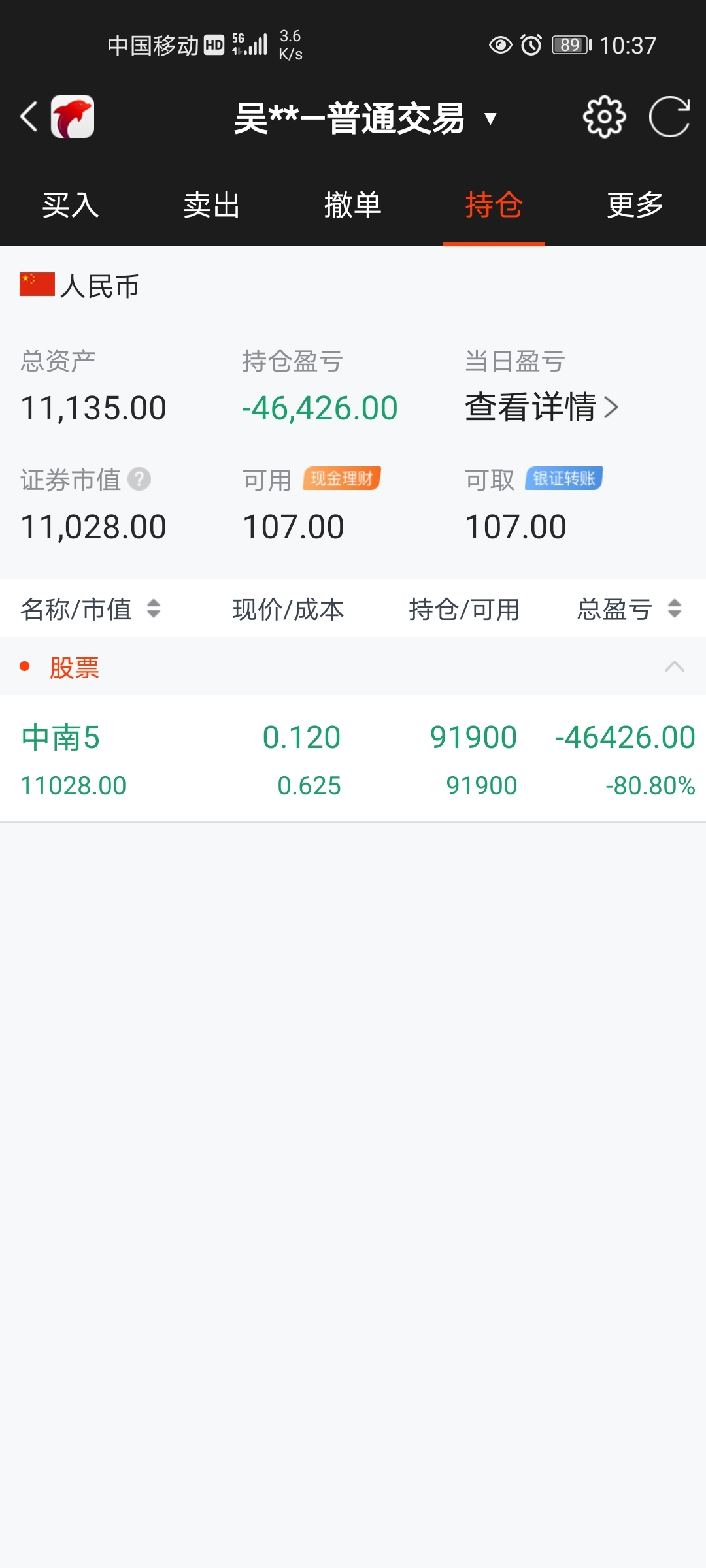 讲实话那么难,亏了80%,留着看中南破产,有的人还说我看空,是拖。