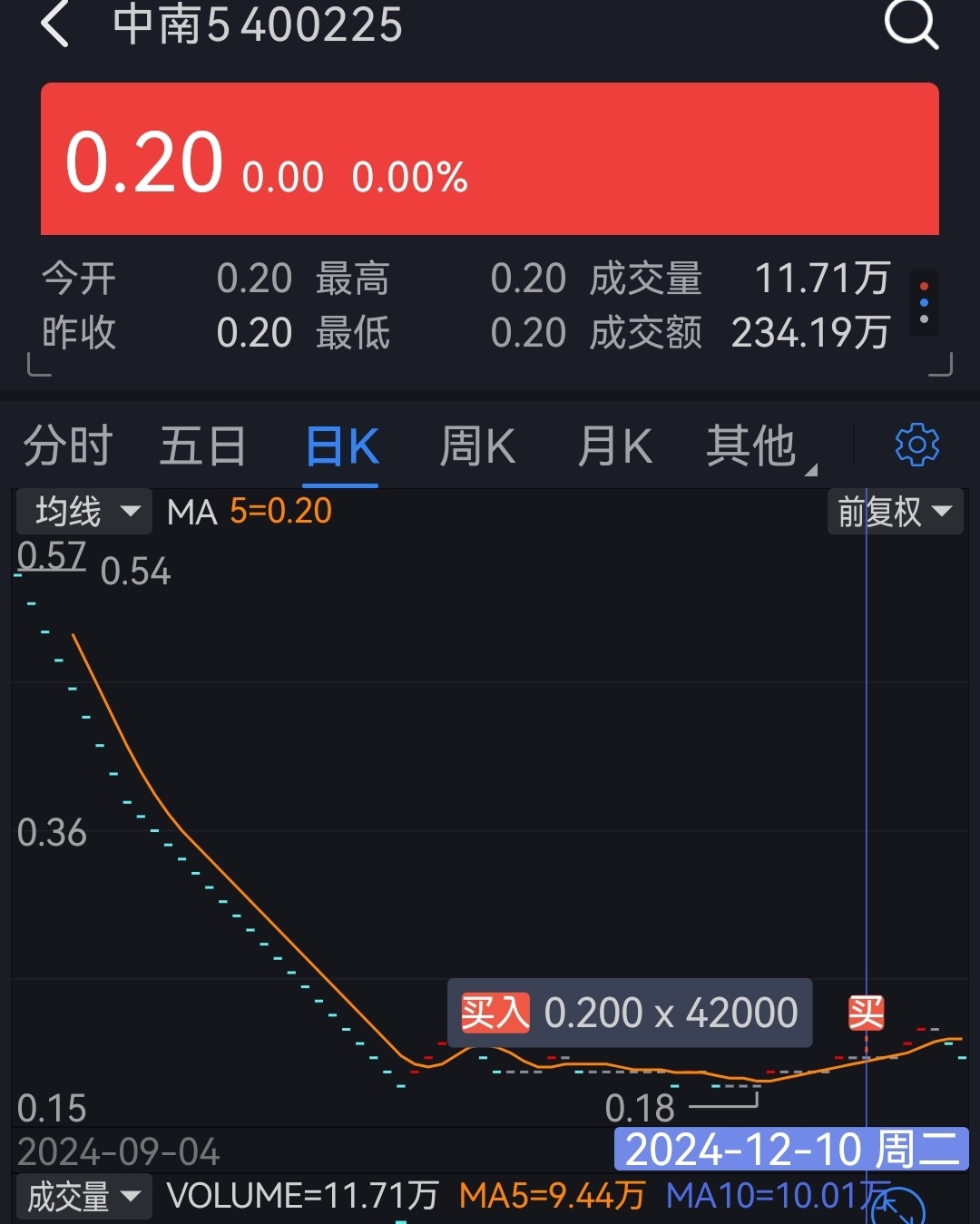 $中南5(SZ400225)$ 三板中南第一次出手买入是在20分买入42000股。