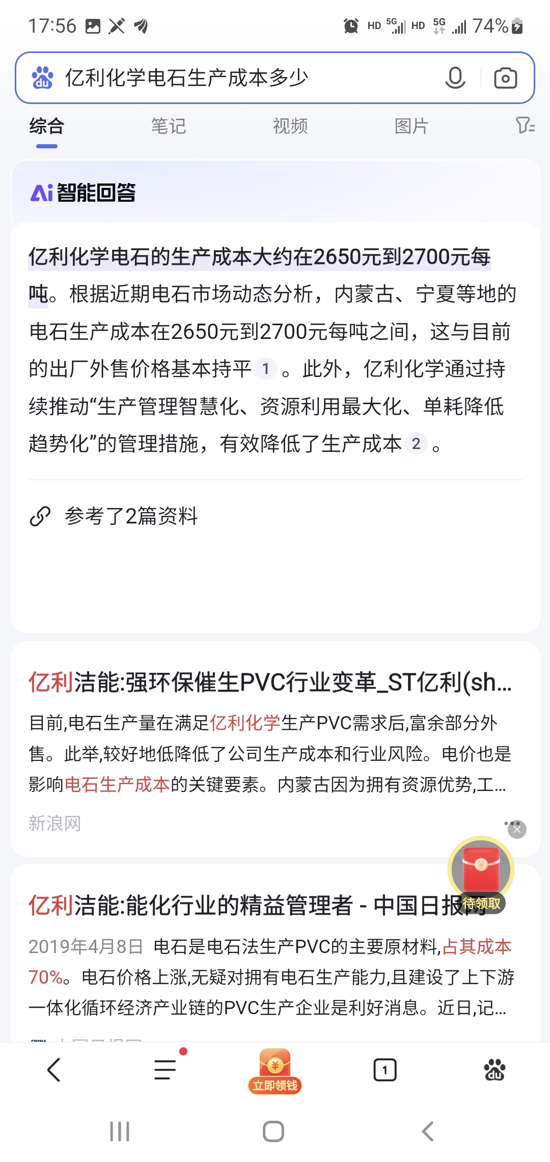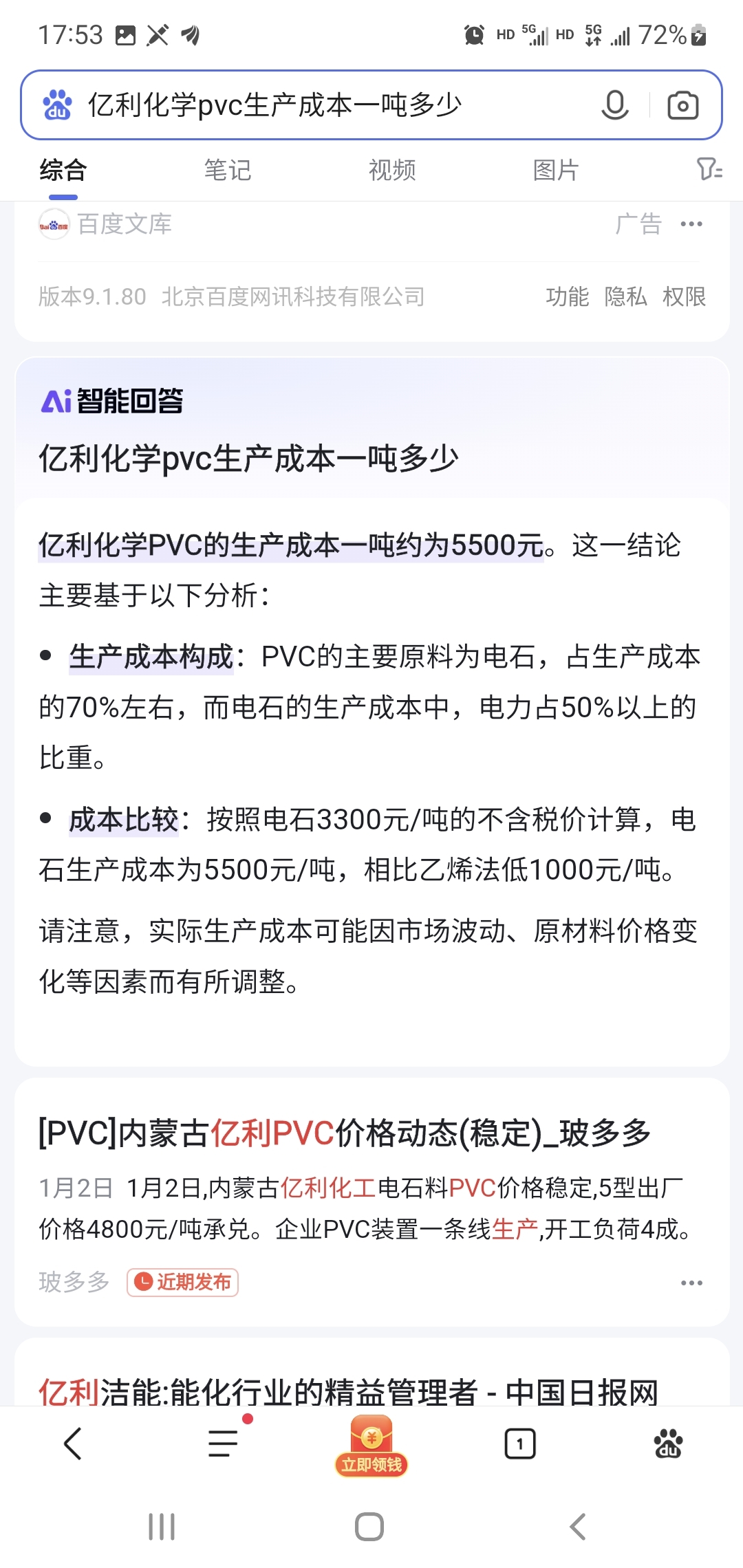亿利化学这次复工几样产品电石一吨能赚几百。pvc平本。后期开始涨估计过不了多久也