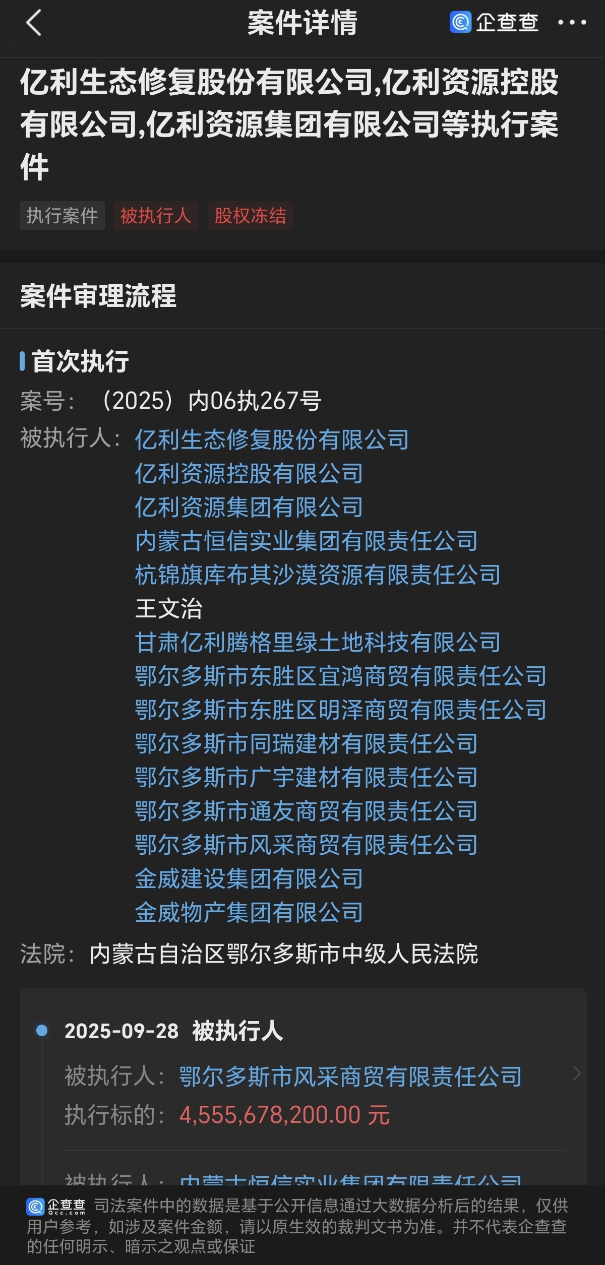 有没有谁能查到这个执行案件是银行申请的还是三峡申请的,我朋友的QCC高高级VIP都查不到
