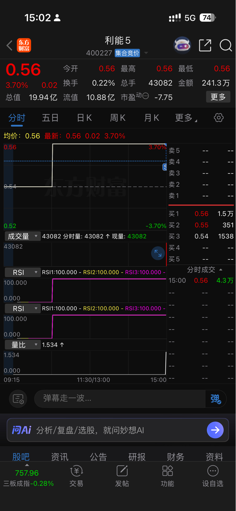 $利能5(SZ400227)$ 0.56谁把我的吃去了