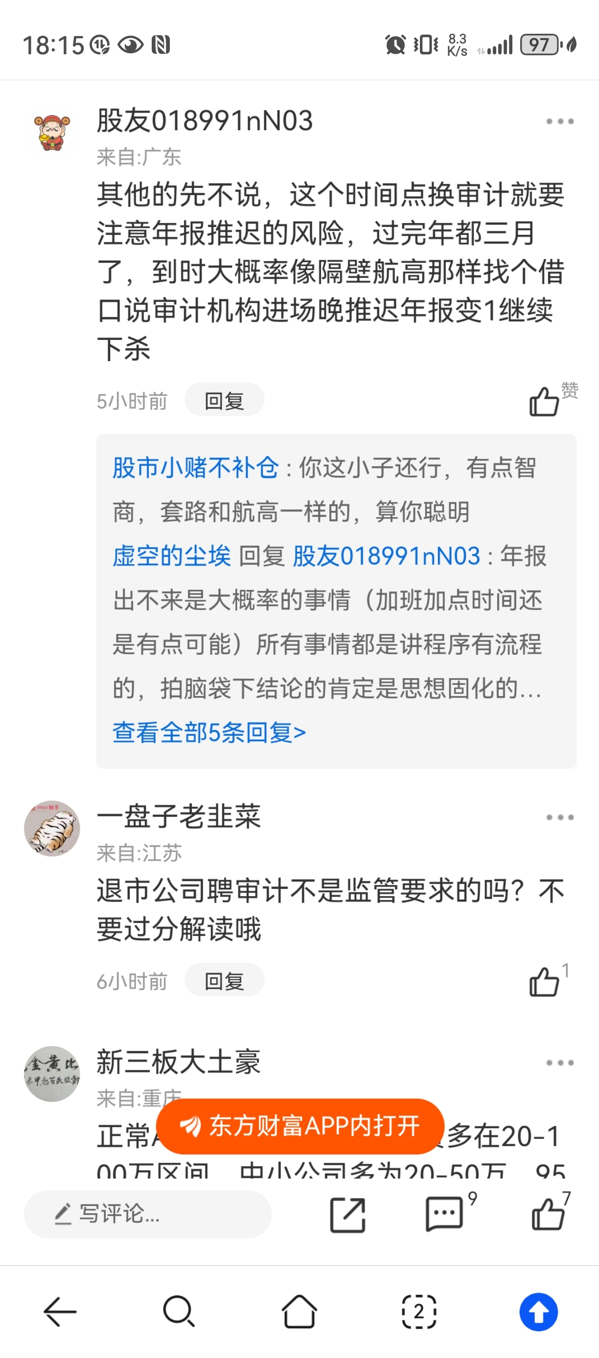 $利能5(SZ400227)$ 这个分析还是有道理,现在已经2月份了,年后就3月份,换了审计,年报延期,就像航高5变R航高1,年报后又变5,变向割韭菜,所以说退市股一样让散户赔钱