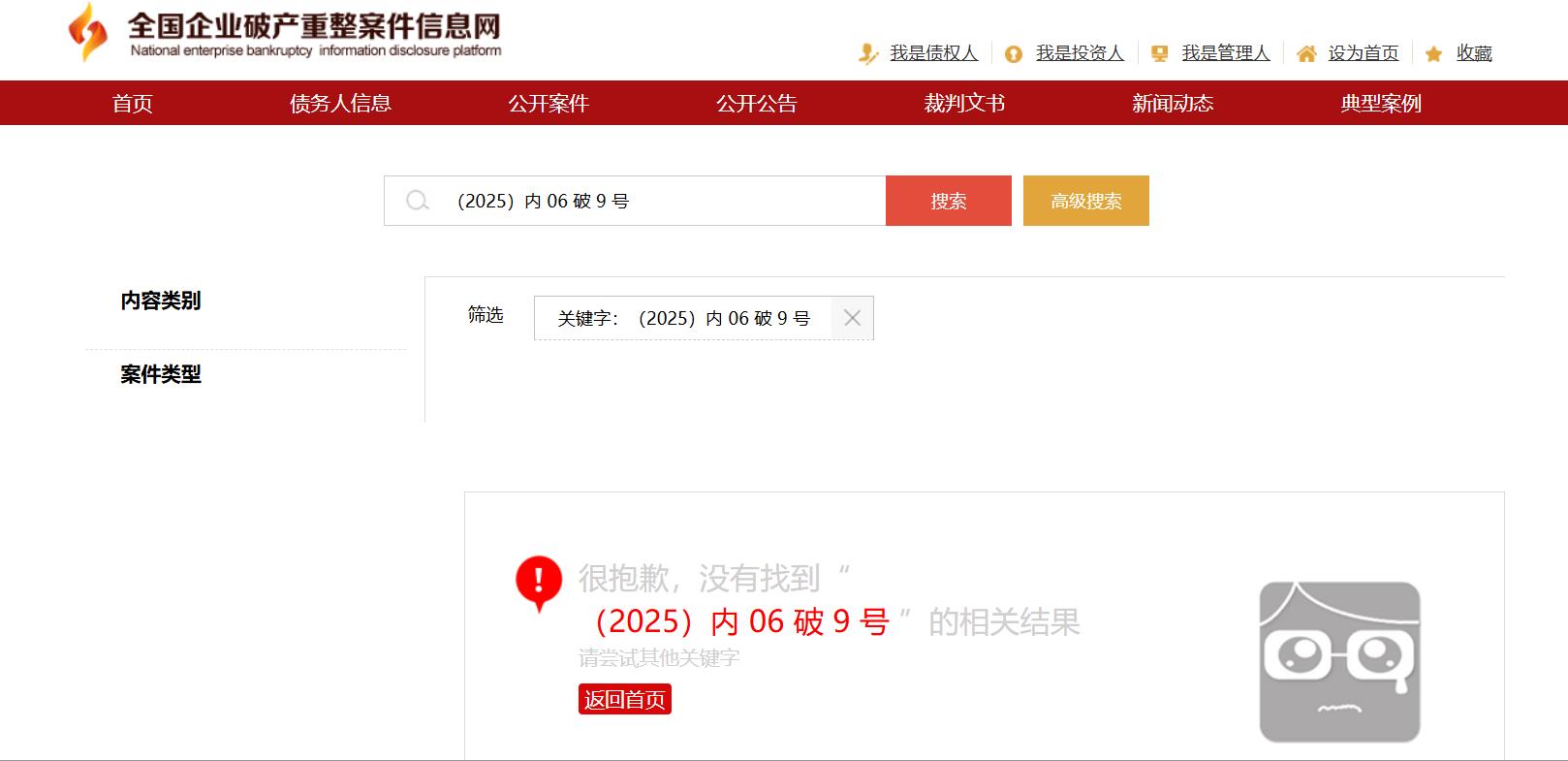 在全国企业破产重整案件信息网上查到的信息,怎么没有呢?