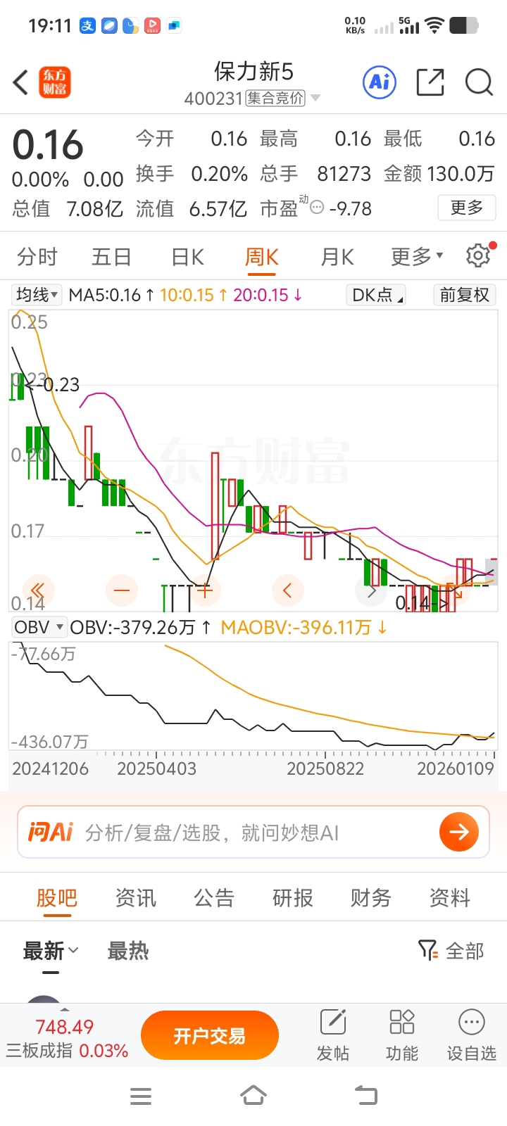 $保力新5(SZ400231)$ 周线级别反弹,这次0.23放量决定方向
