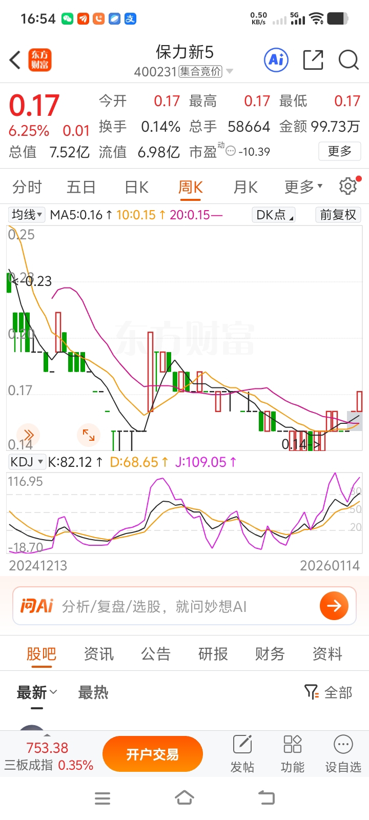 $保力新5(SZ400231)$ 明天你们都别抢了,我让几个老朋友配置点,如果是急着用钱开盘挂0.18,,,反弹到了0.23左右会有一点点阻力,目前还早!!!死叉不死看高一线,周线级别的反弹,kd在60以上抢钱时机,,股票到了0.2及以上,月线级别反攻,如果是成交量不够可能是在0.23,,0.24...0.22反复几天,,过了0.34回头看,,都是些小山谷。。