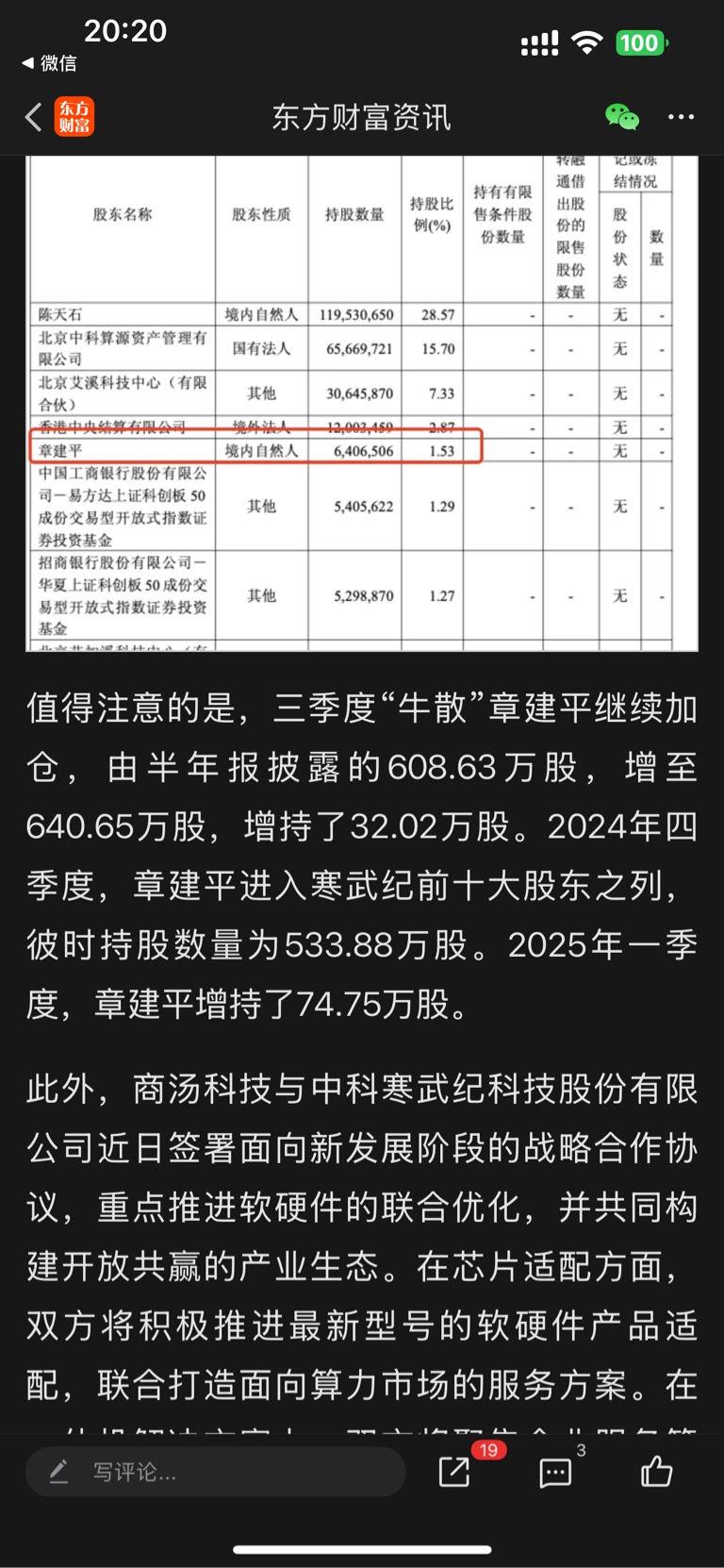 牛散 章建平 继续加仓 左王 小弟 寒武纪