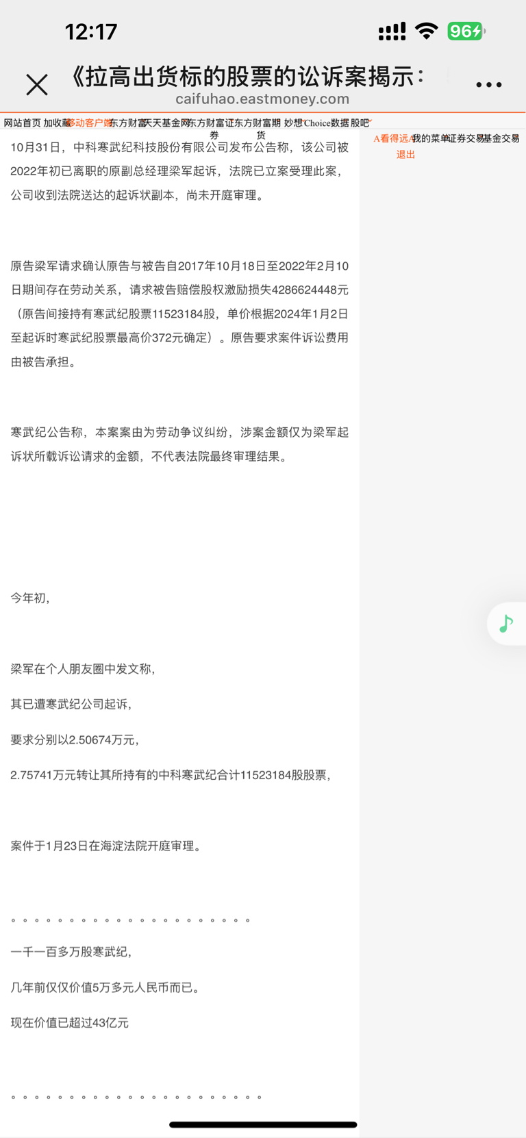 叫空的看看小弟 寒武纪 被索赔48亿股价照涨不误!