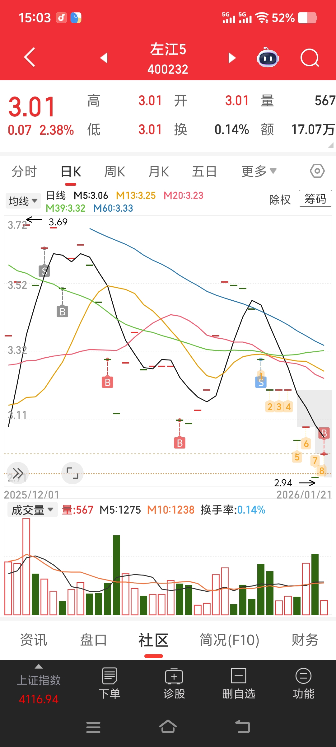 $左江5(SZ400232)$ 己套住了。这年也不好过。