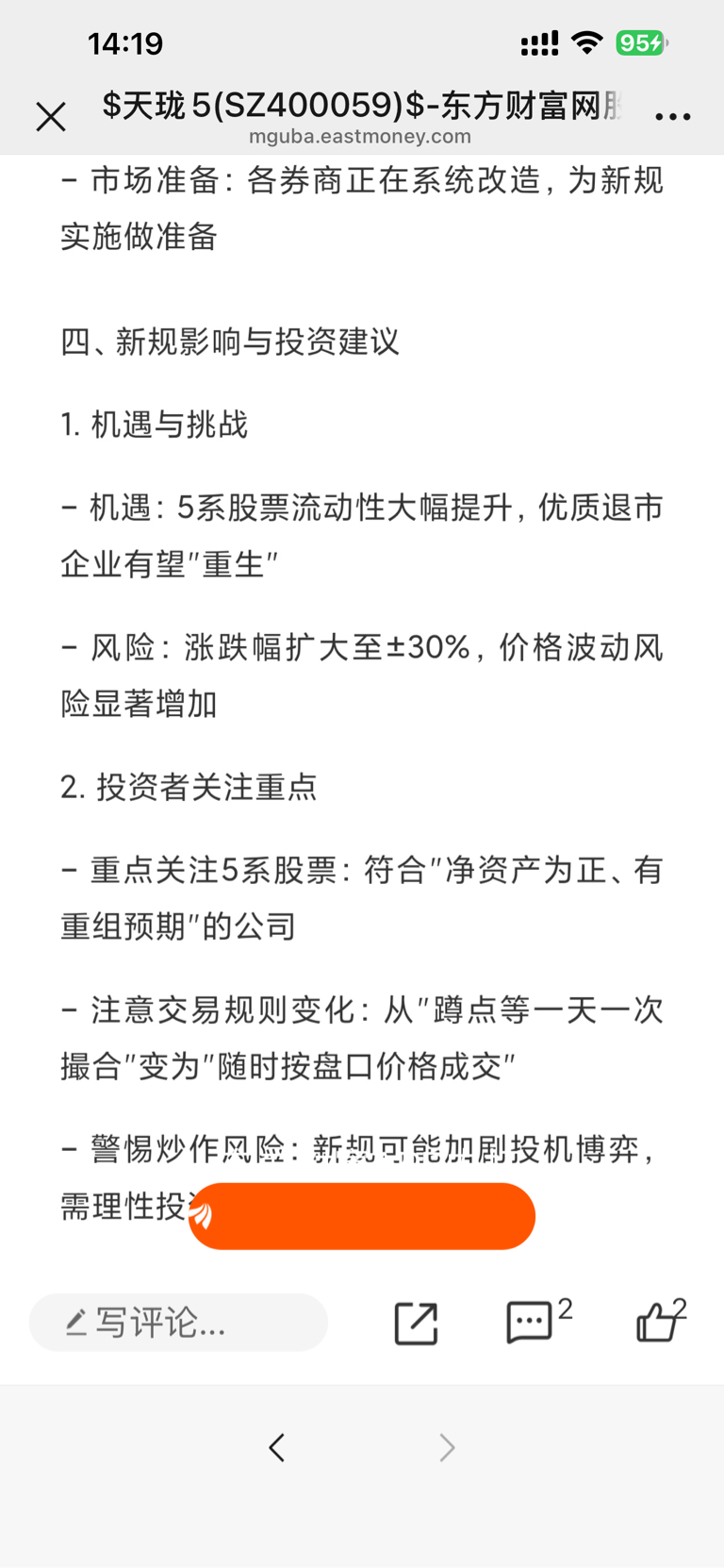 温馨提示: 1.根据《证券法》规定,禁止编造、传播虚假信息或者误导性信息,扰乱证券市场;2.用户在本社区发表的所有资料、言论等仅代表个人观点,与本网站立场无关,不对您构成任何投资建议。用户应基于自己的独立判断,自行决定证券投资并承担相应风险。《东方财富社区管理规定》