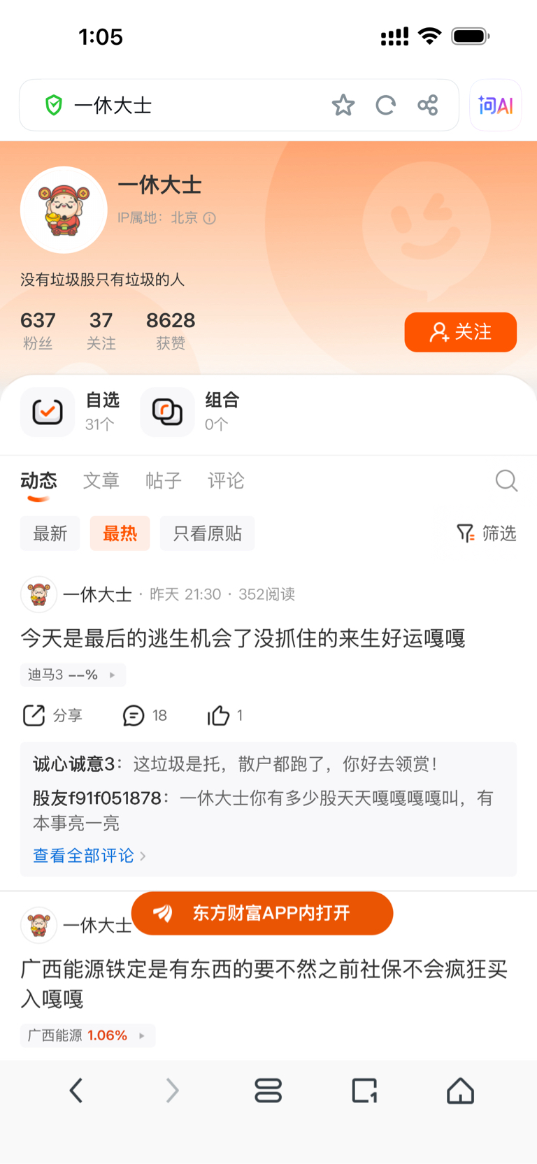 温馨提示: 1.根据《证券法》规定,禁止编造、传播虚假信息或者误导性信息,扰乱证券市场;2.用户在本社区发表的所有资料、言论等仅代表个人观点,与本网站立场无关,不对您构成任何投资建议。用户应基于自己的独立判断,自行决定证券投资并承担相应风险。《东方财富社区管理规定》