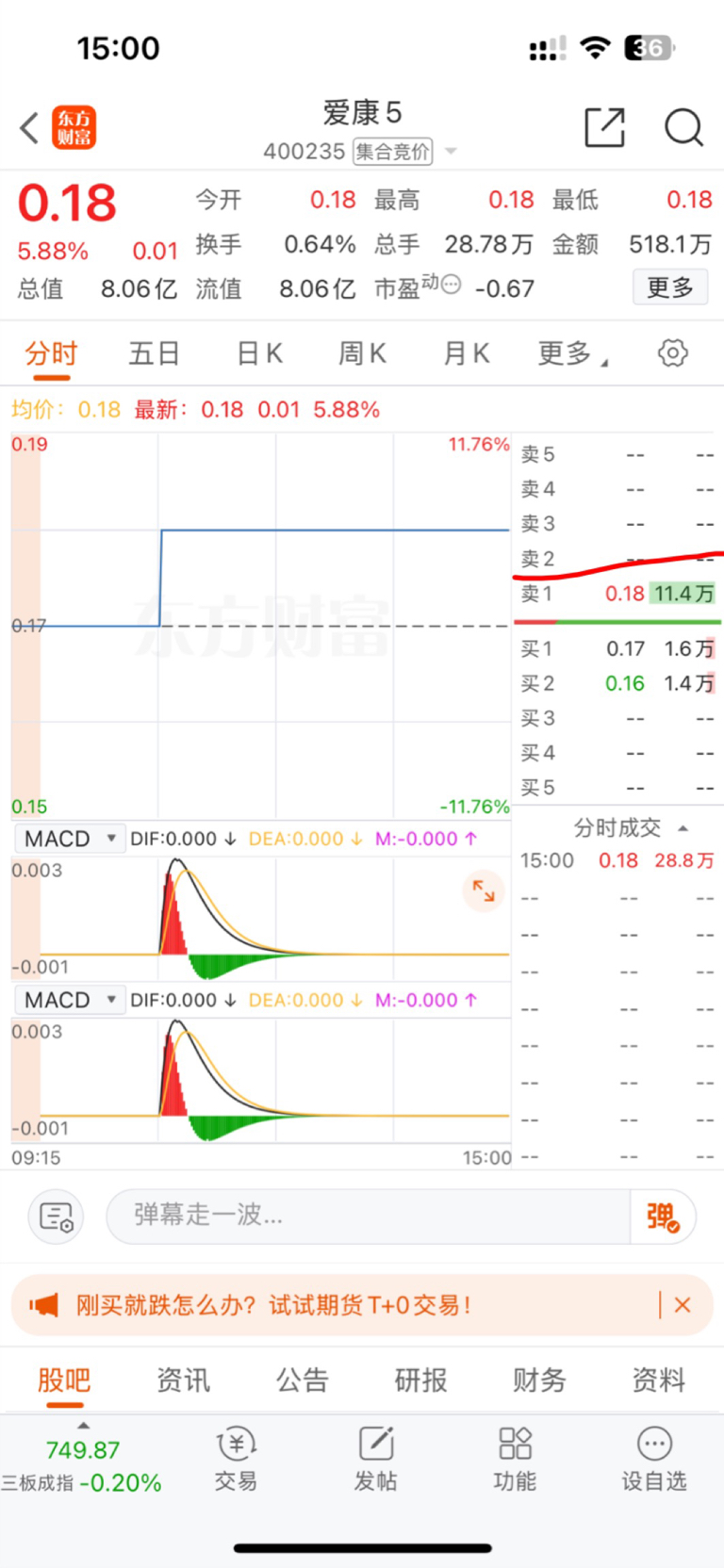 $爱康5(SZ400235)$ 明天0.19有点 到不了呀 这么多 砸盘的11万手卖单呀!