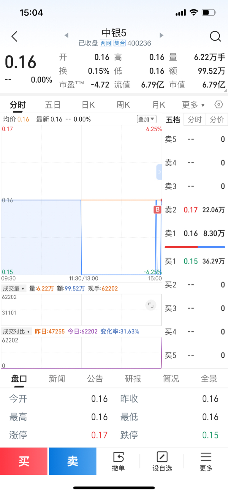 $中银5(SZ400236)$ 现价成交,补仓中银!