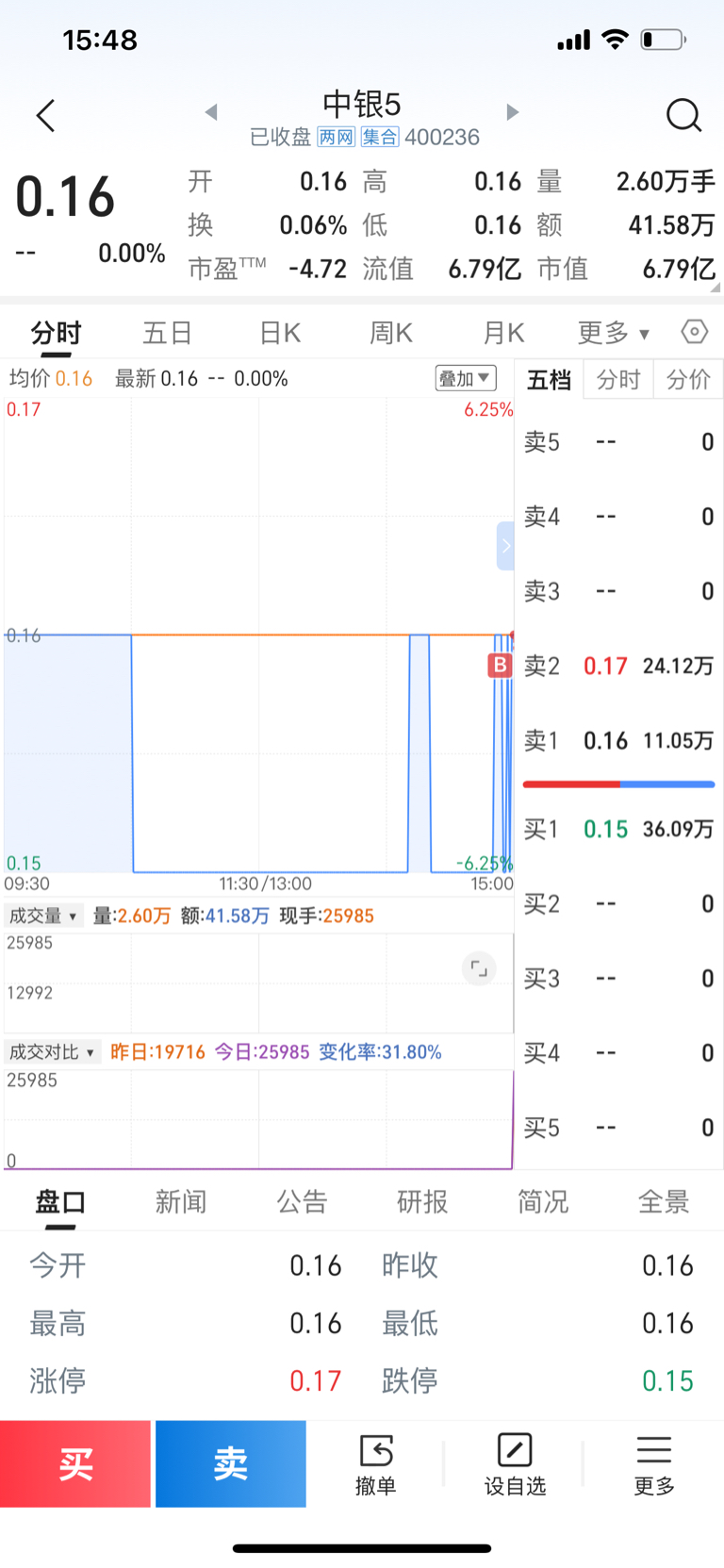 $中银5(SZ400236)$ 现价成交,补仓中银!