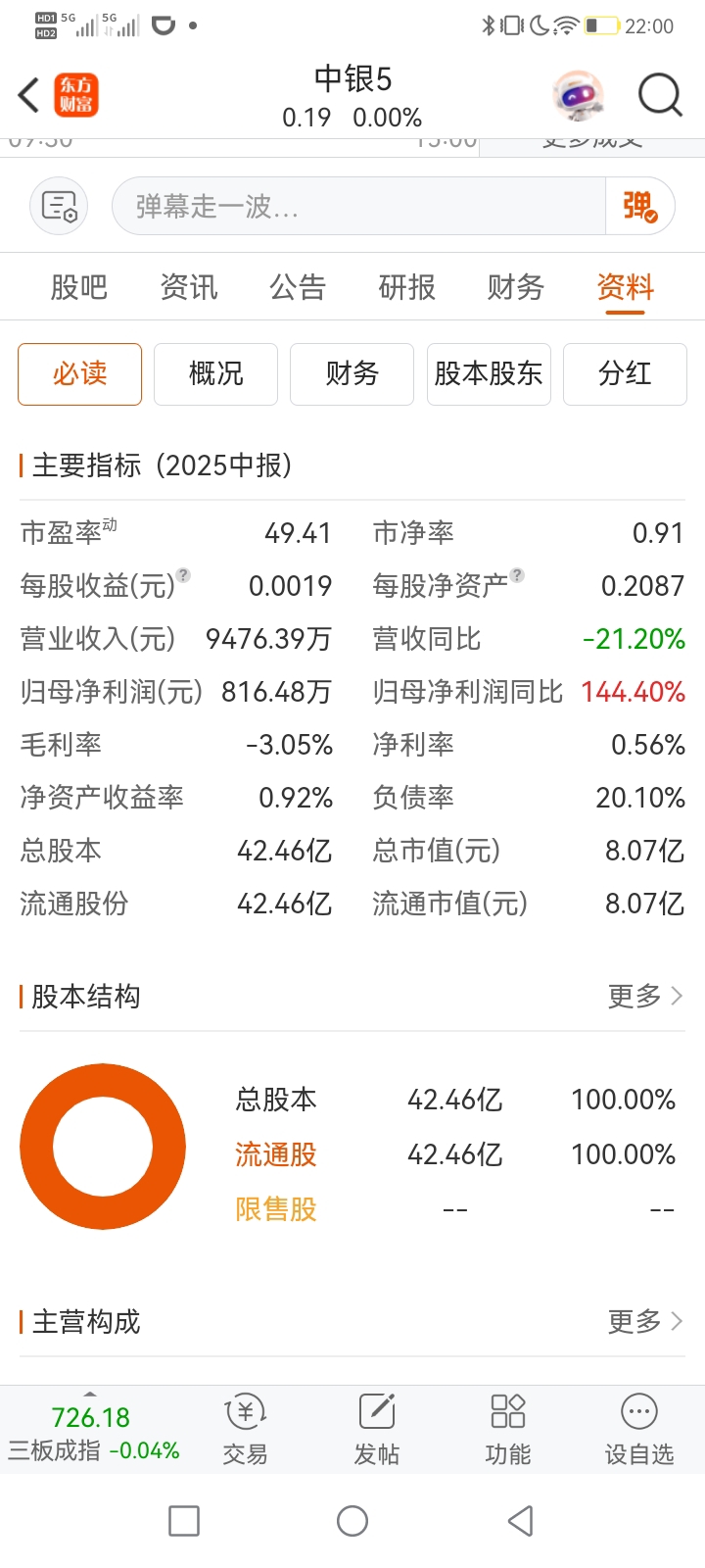 $中银5(SZ400236)$ 盘子有点大 42亿股 一脚一下