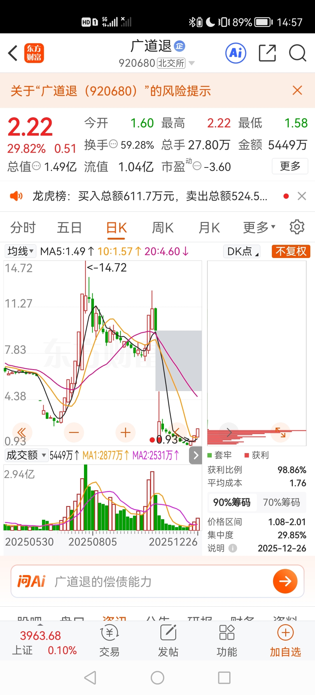 $中银5(SZ400236)$ 一个退市的股票卖得那么狂飙?什么原因?