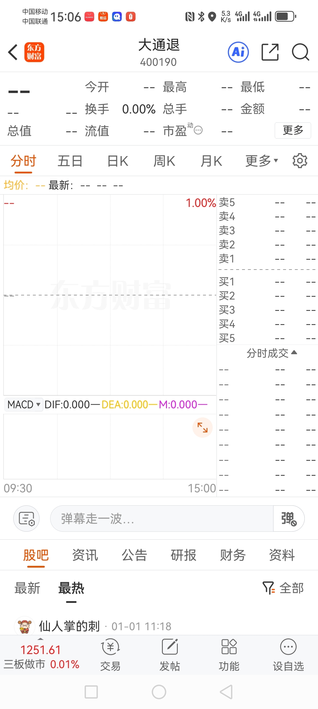 $中银5(SZ400236)$ 我也够倒霉的了买了大通也退市了!