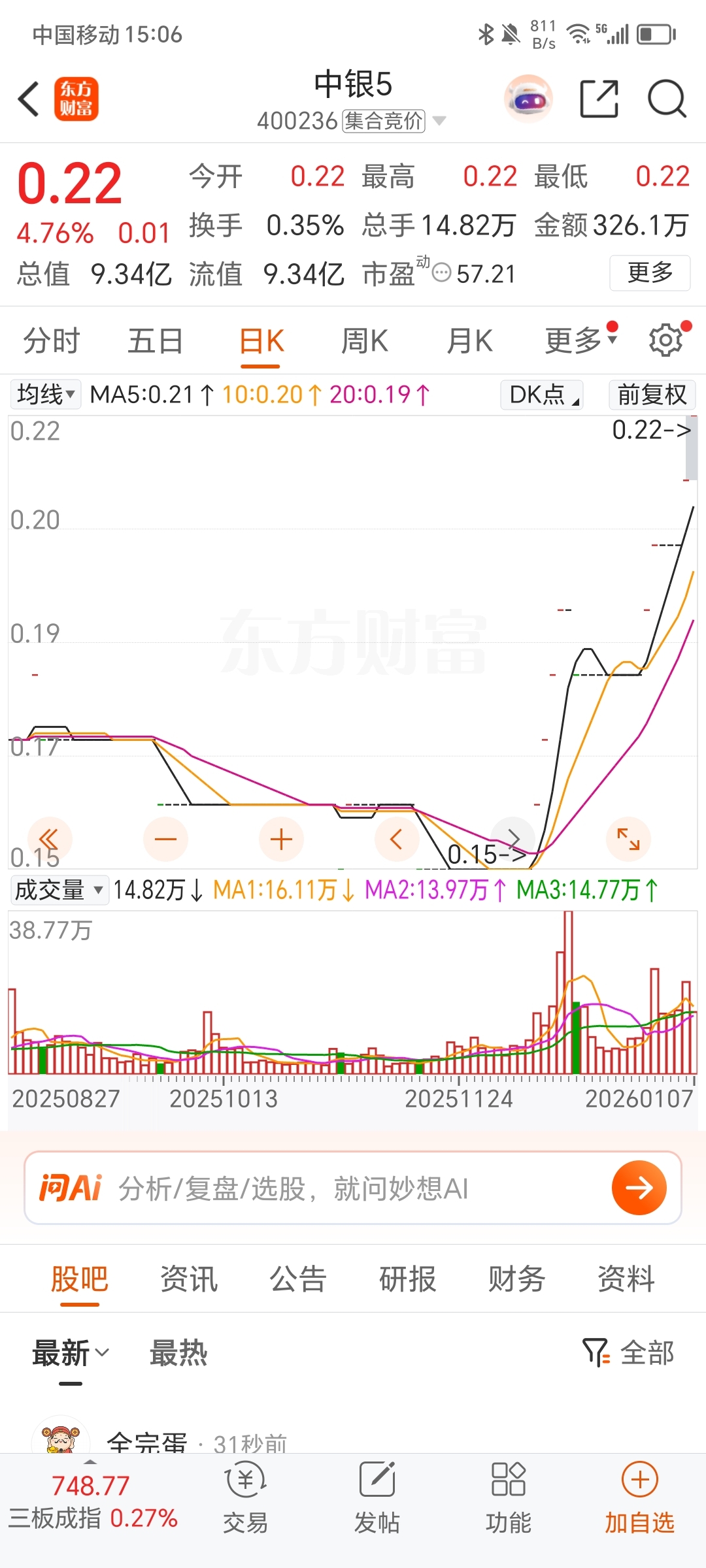 $中银5(SZ400236)$ 个人分析。之前全部是吃进的现在是吃肉了