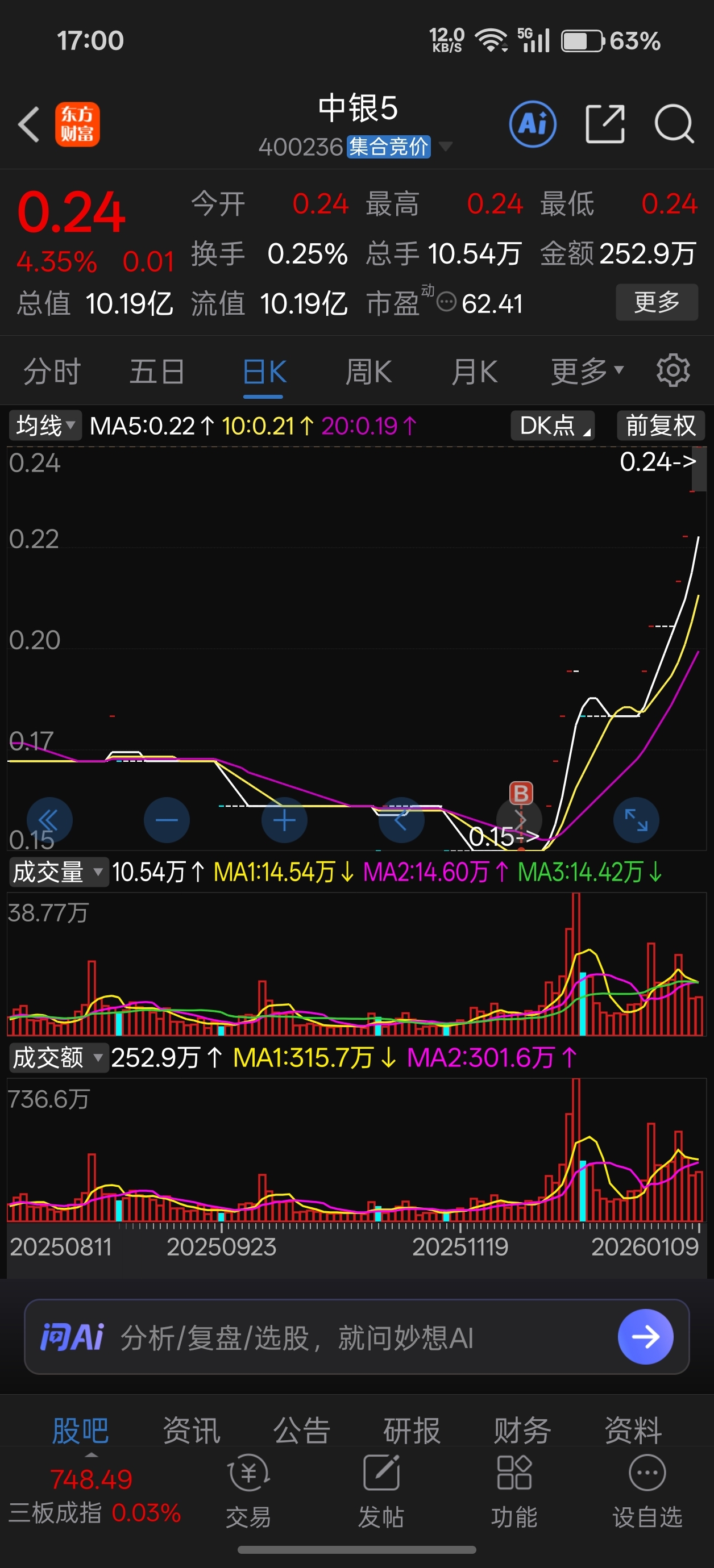 $中银5(SZ400236)$ 有没有1毛5的朋友