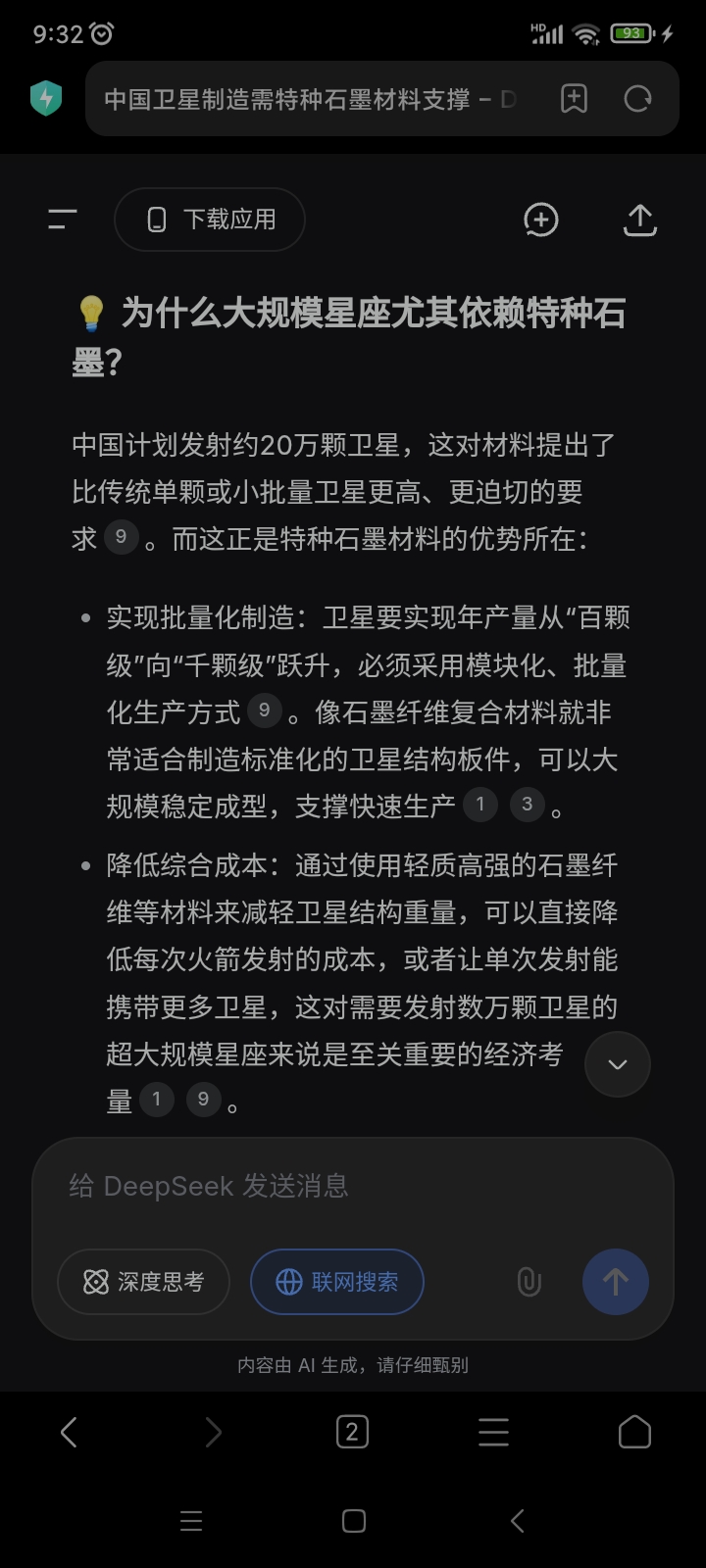 刚刚问了deepSeek,回答是卫星的制造,特种石墨材料还真的是关键材料!这么说,万贯实业其实比北京未来导航公司还更有前景!!!