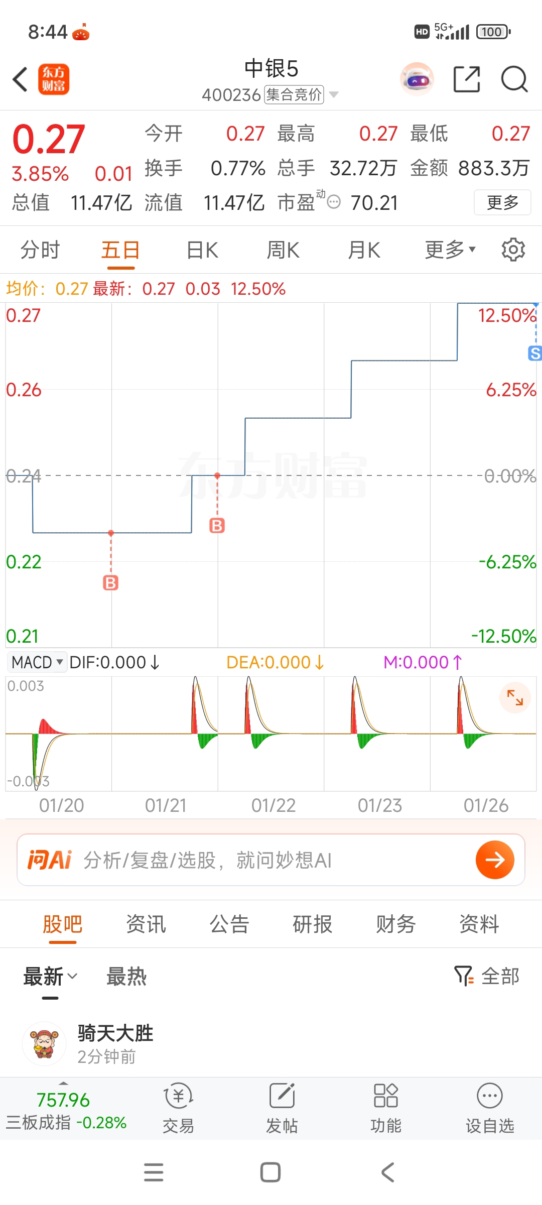 $中银5(SZ400236)$ 今天封死涨停,那就一路向上了,我卖了也希望他天天涨停,让里面的早点解套赚