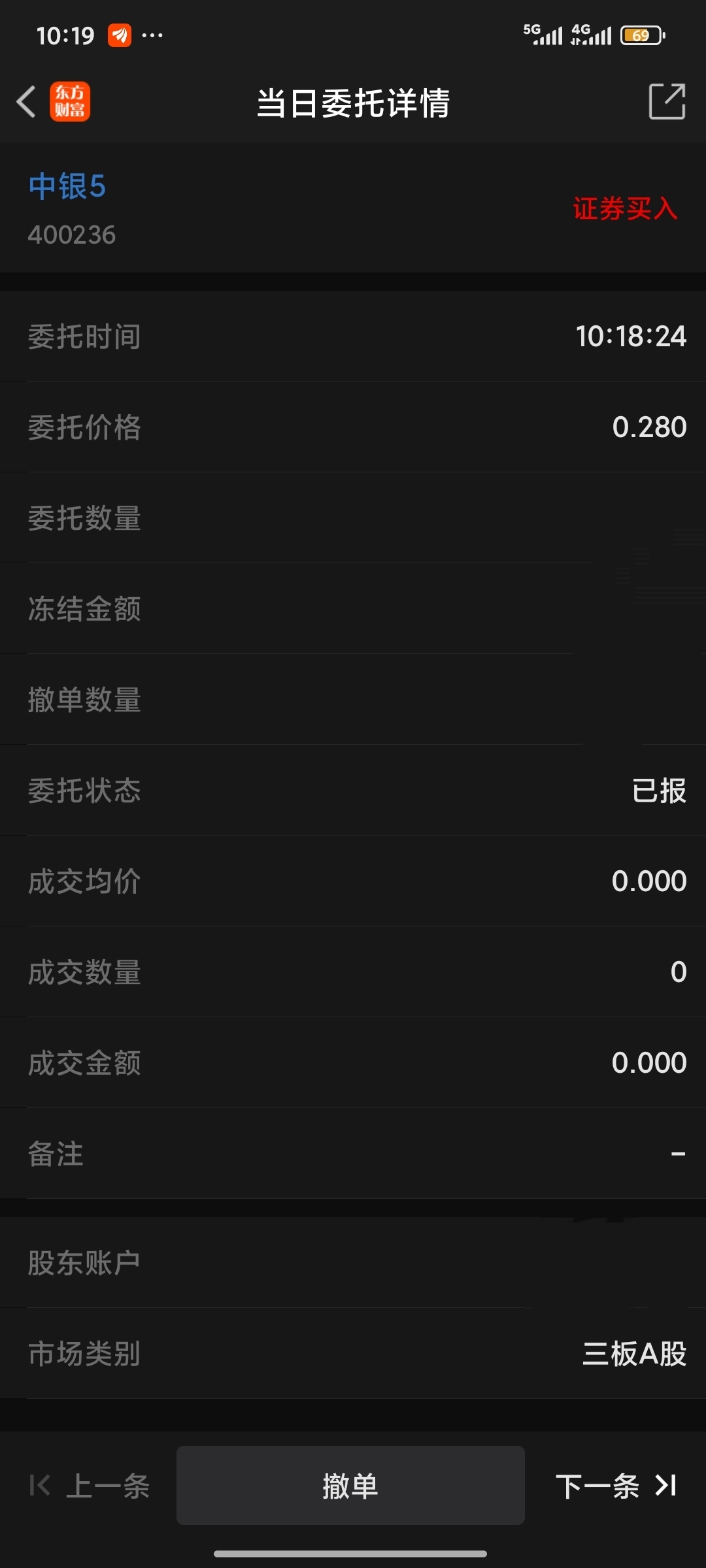 下错单了,应该下0.29的,撤单重新下单