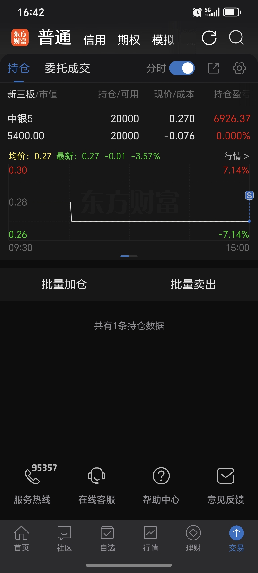 留了2万股低仓,过几天再接回