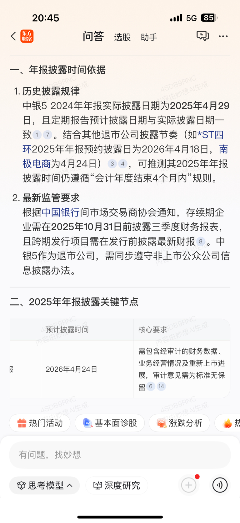 $中银5(SZ400236)$ 刚才查了一下,24年的年报在4月份出的,如果没有变化的话,25年的年报也定在4月底了。