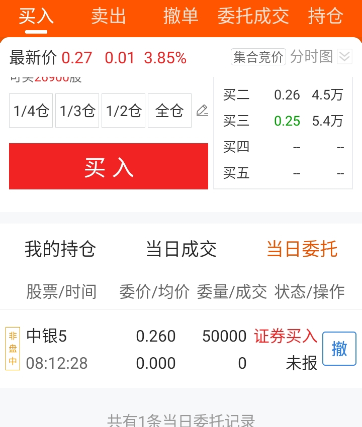 $中银5(SZ400236)$ 0.26逢低吸纳5万股,今天有砸盘的吗?