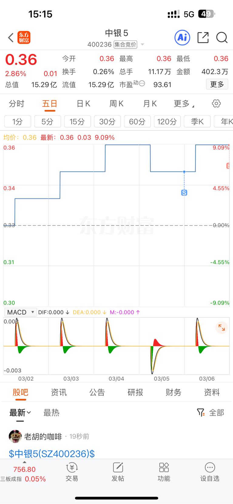 $中银5(SZ400236)$