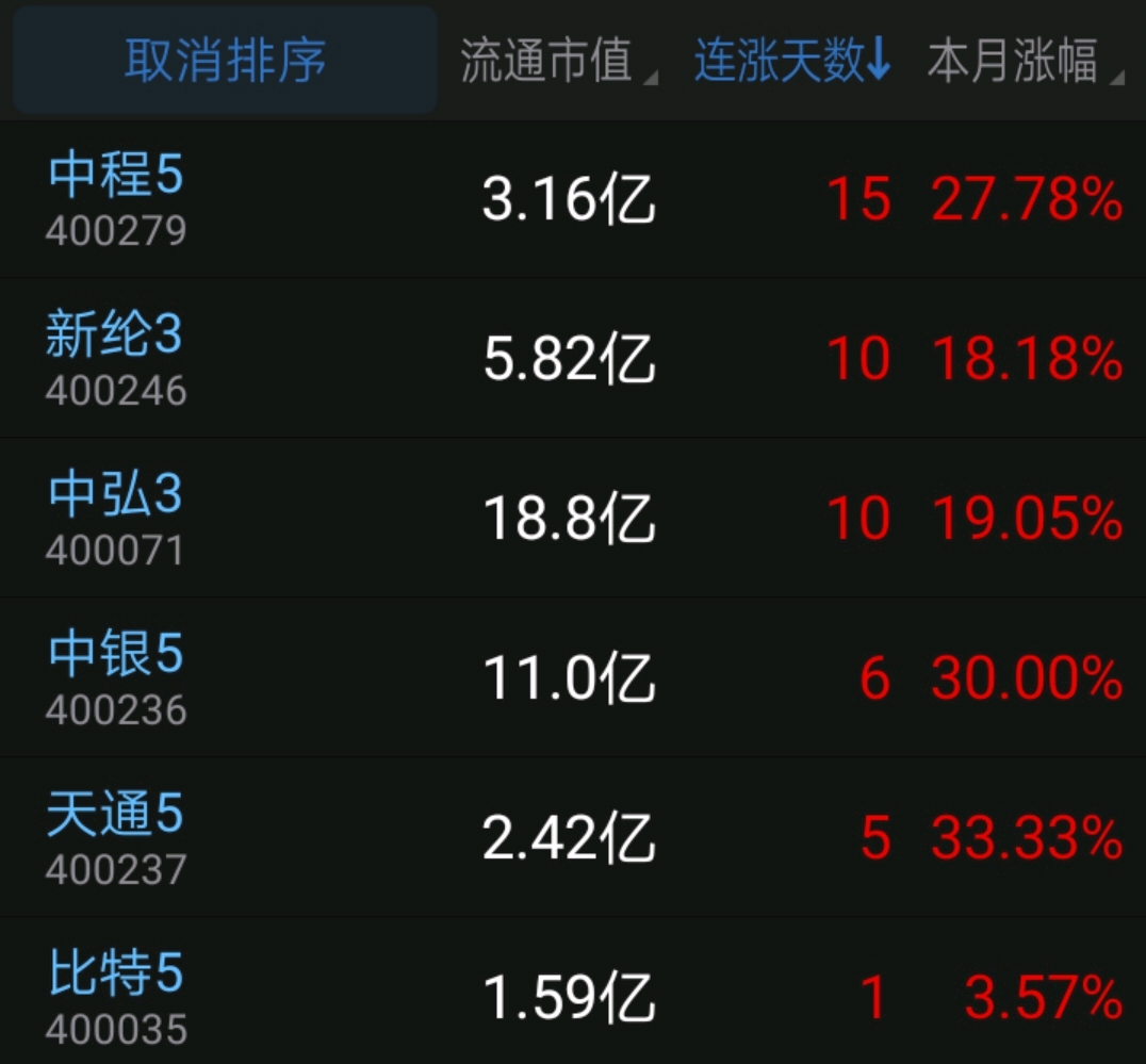目前,工智3,19板。中程5,15板。中银5,10板。新纶5,10板。天通5,5