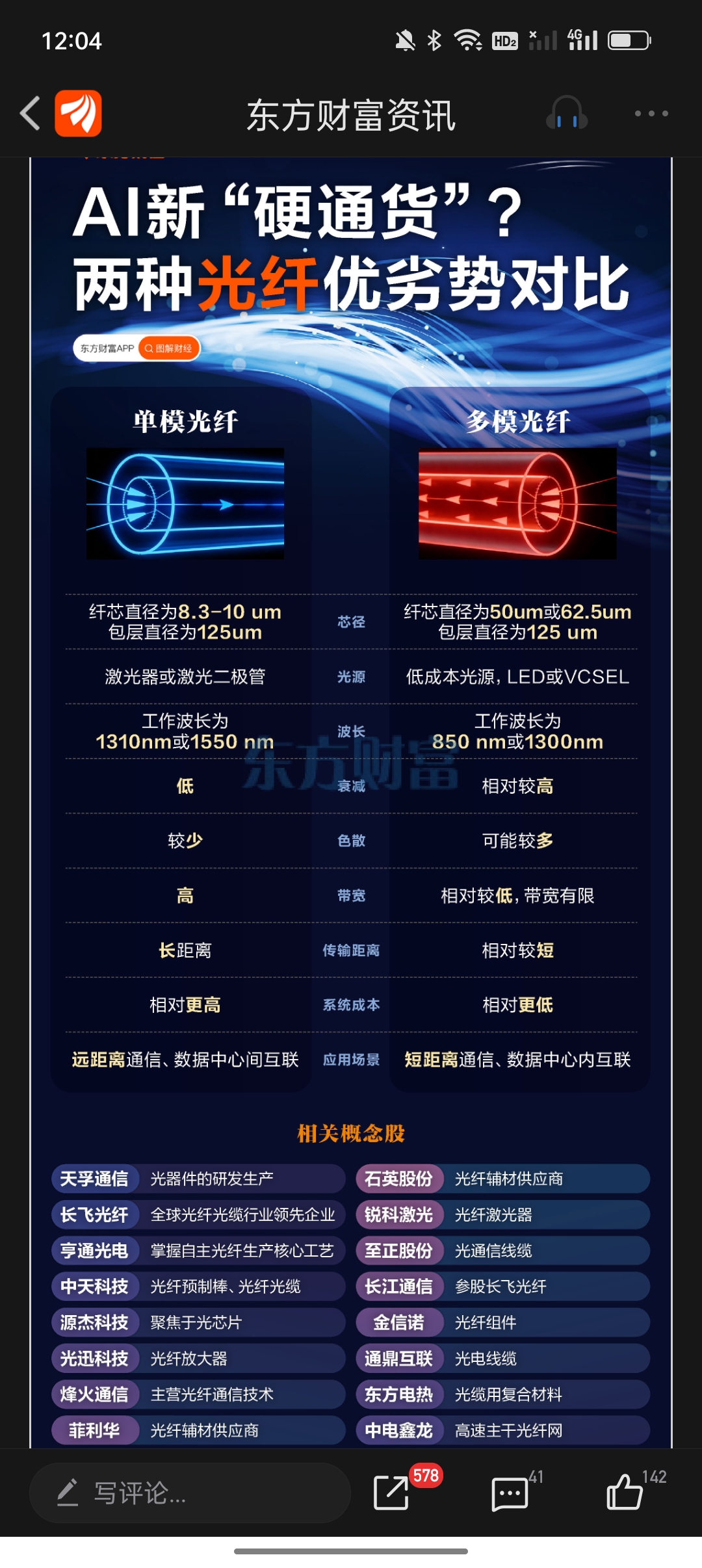 $天通5(SZ400237)$ Ai新贵硬通货:单模光纤和多模光纤。