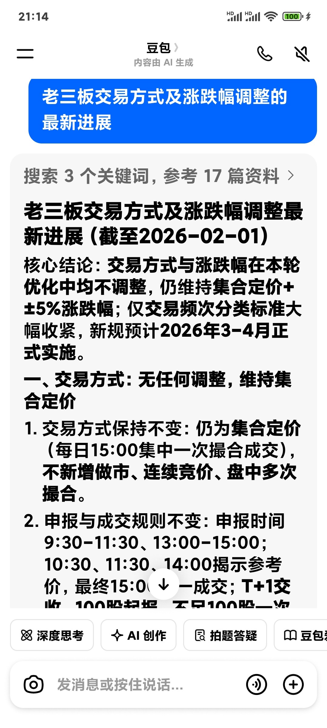 1. 交易方式保持不变:仍为集合定价(每日15:00集中一次撮合成交),不新增做市、连续竞价、盘中多次撮合。