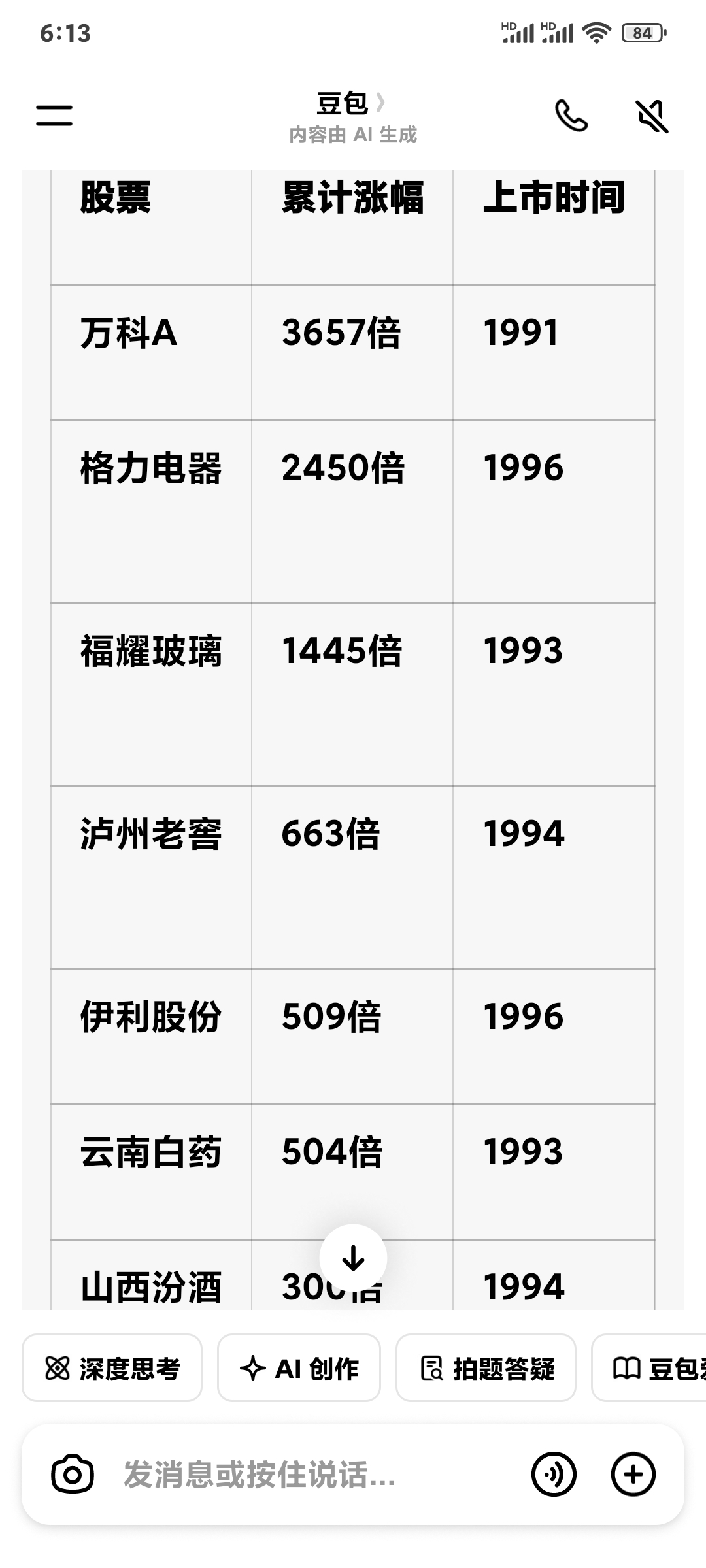 云南白药 504倍 1993 医药生物 6.15元 1589元 中药保密配方,消费属性强