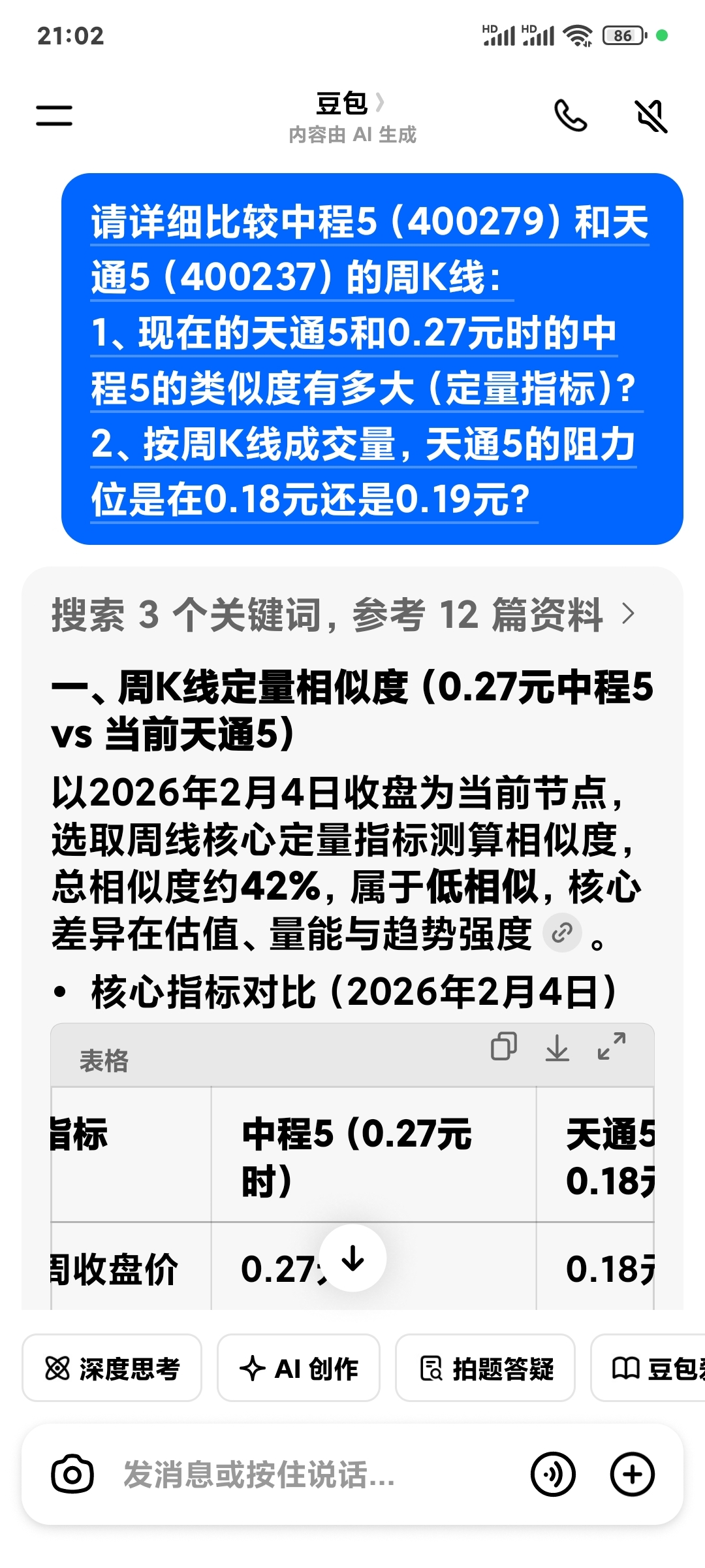 1、现在的天通5和0.27元时的中程5的类似度有多大(定量指标)?