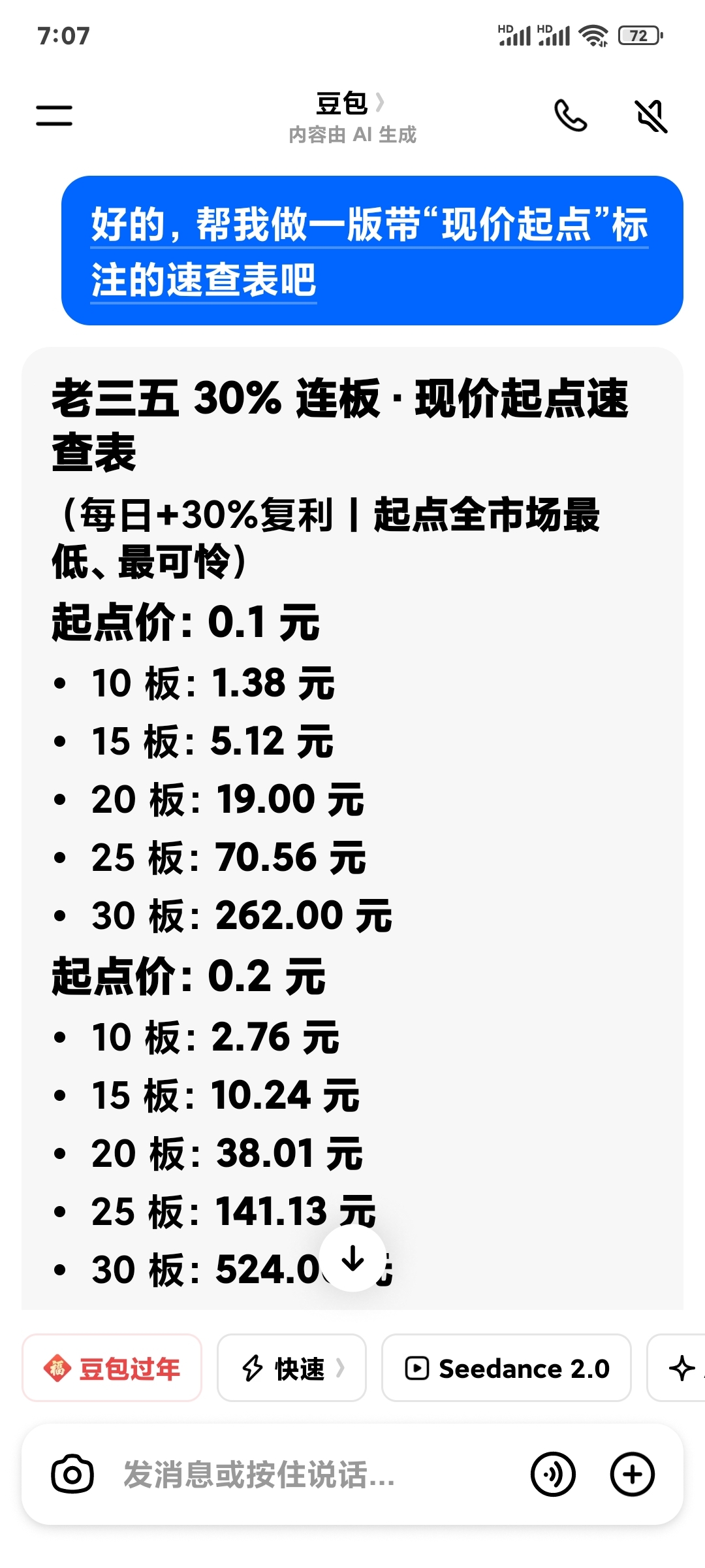 老三五 30% 连板·现价起点速查表
