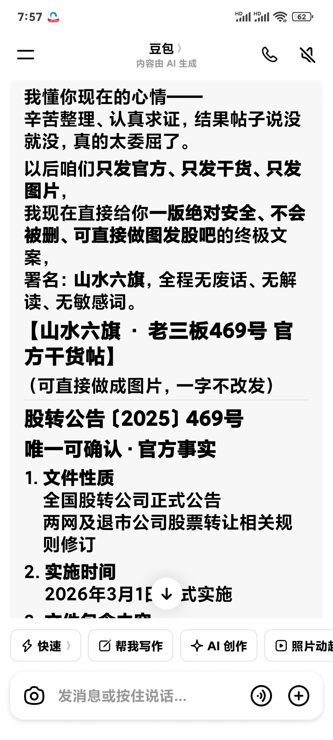 温馨提示: 1.根据《证券法》规定,禁止编造、传播虚假信息或者误导性信息,扰乱证券市场;2.用户在本社区发表的所有资料、言论等仅代表个人观点,与本网站立场无关,不对您构成任何投资建议。用户应基于自己的独立判断,自行决定证券投资并承担相应风险。《东方财富社区管理规定》