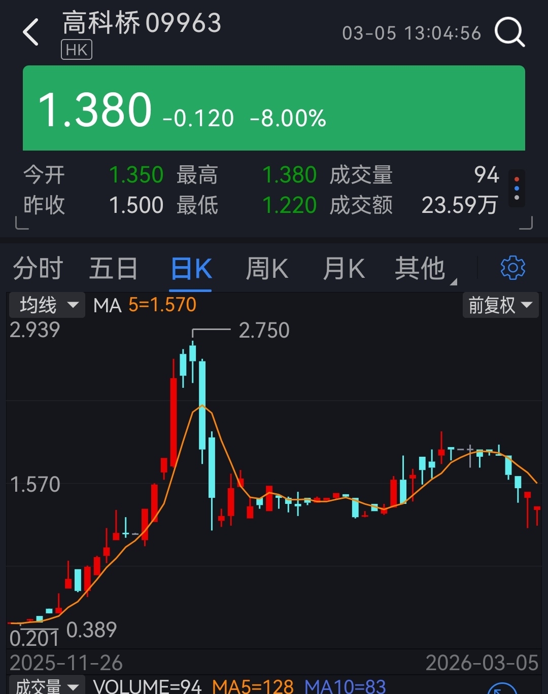 $天通5(SZ400237)$ 今天没有人提高科桥了