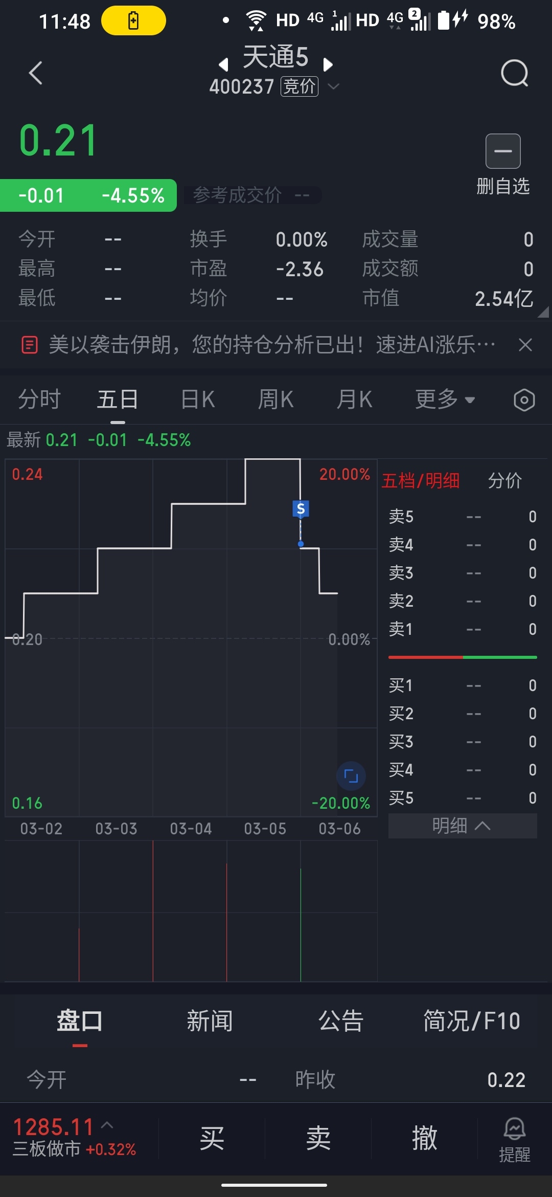 $天通5(SZ400237)$ 昨天卖掉了,看大家表演,等大家都跌的说不出话了,我再来