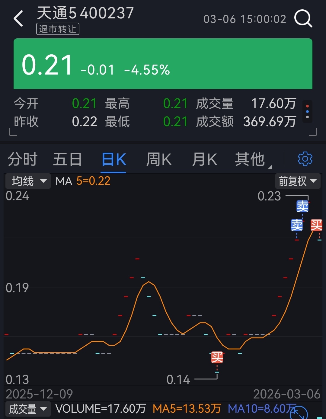 $天通5(SZ400237)$ 都说我一买就涨,一卖就跌,下周一看看准不准