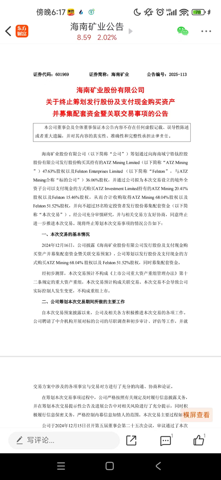 海南矿业终止收购,我猜是不想卖不是不想买