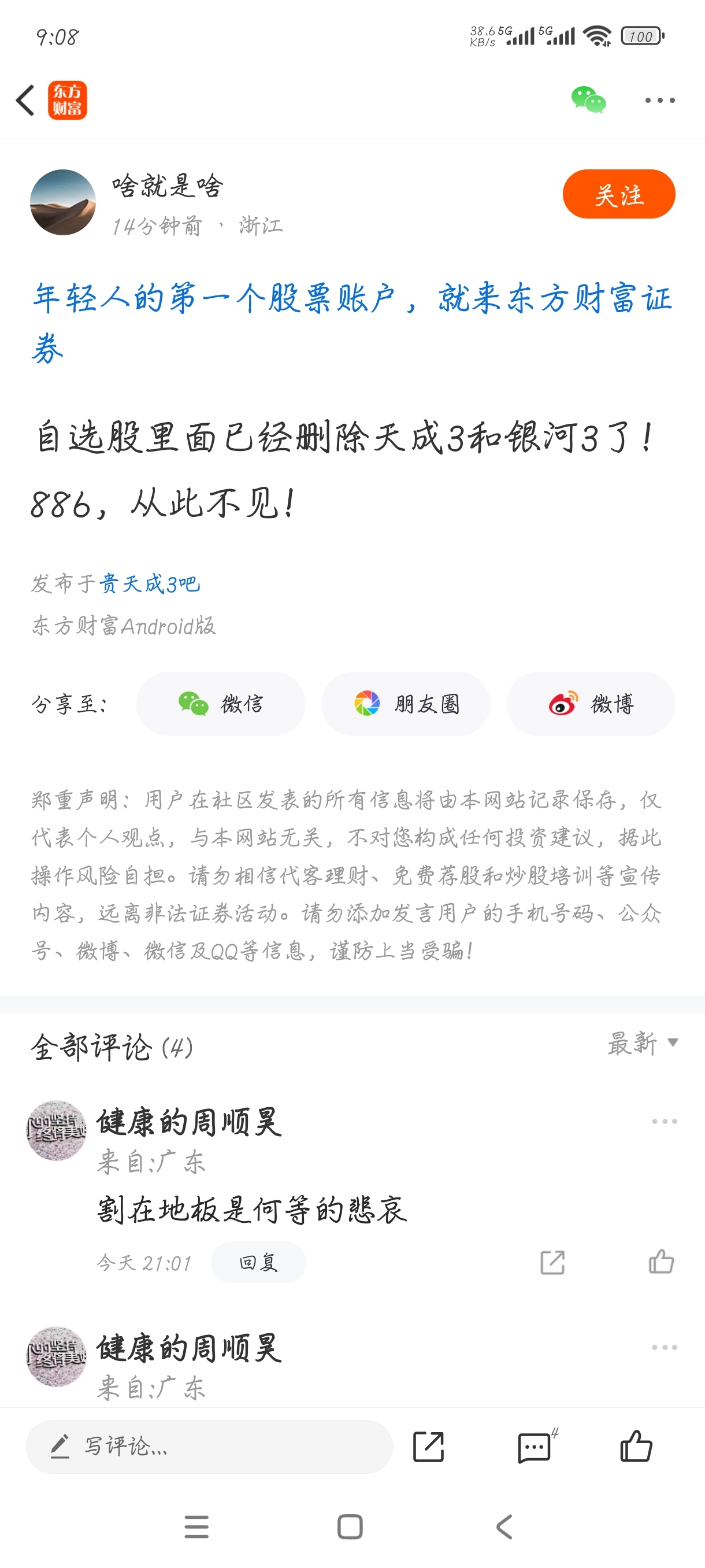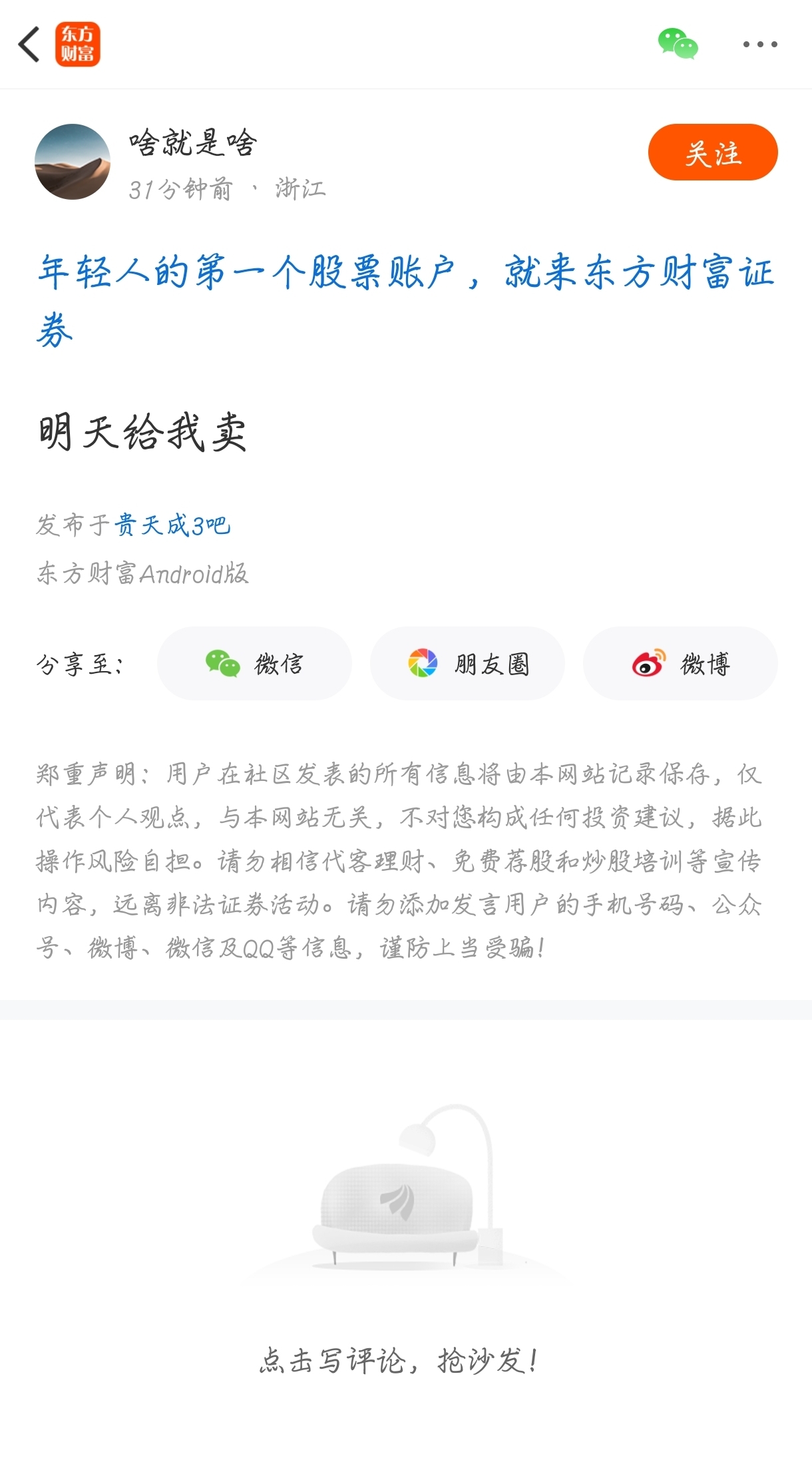 温馨提示: 1.根据《证券法》规定,禁止编造、传播虚假信息或者误导性信息,扰乱证券市场;2.用户在本社区发表的所有资料、言论等仅代表个人观点,与本网站立场无关,不对您构成任何投资建议。用户应基于自己的独立判断,自行决定证券投资并承担相应风险。《东方财富社区管理规定》
