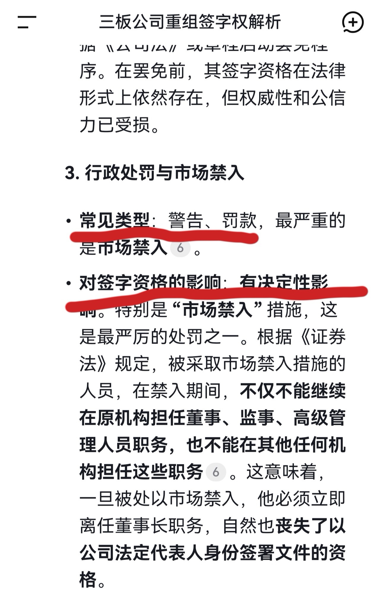 高总所受处罚的确影响其作为董事长兼法人代表的签字的资格以及权威!
