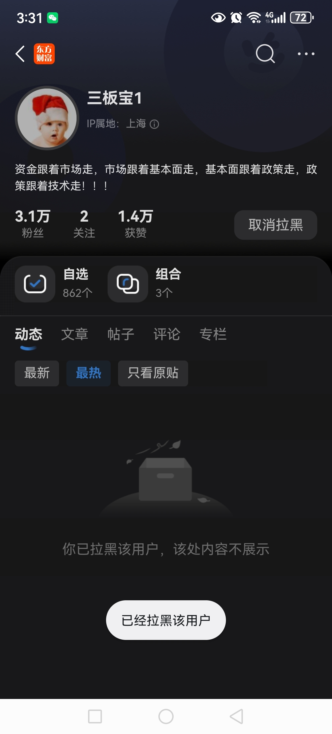 拉黑一切,我从来不喷任何人,除非忍不住!自己感觉自己无敌了,都知道今天会跌你