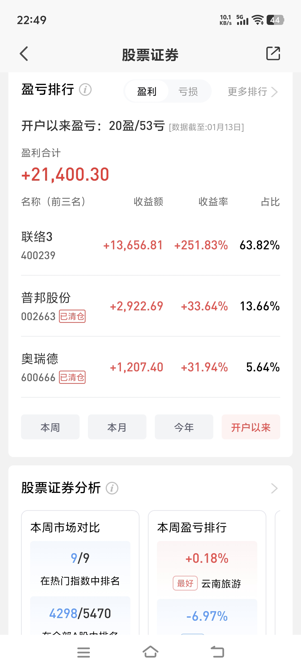 $联络3(SZ400239)$ 自开互以来,我这是挣了吗