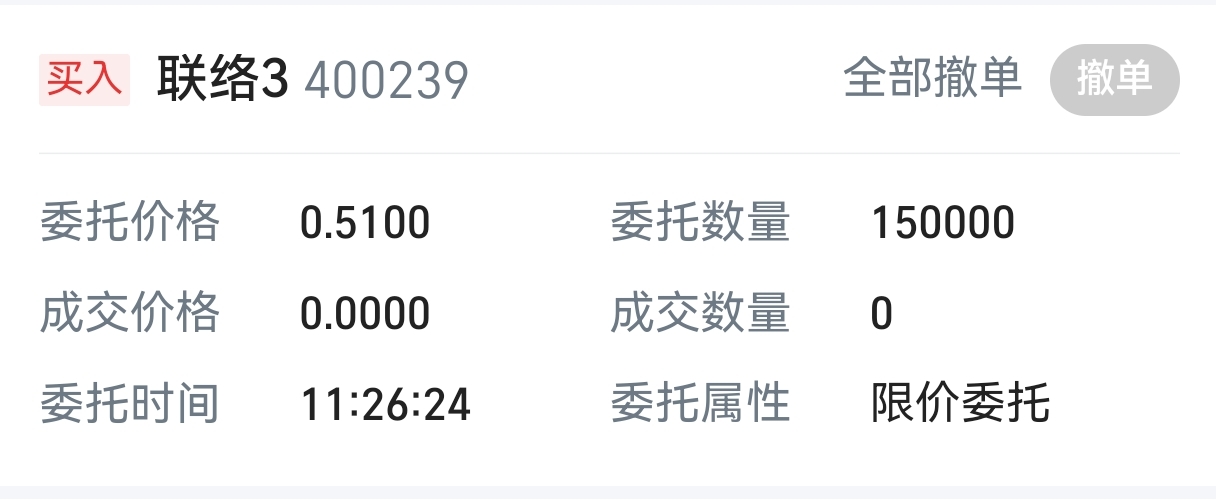 $联络3(SZ400239)$ 还好最后一刻撤单了,漂亮完美