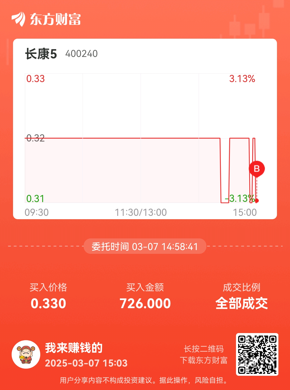 温馨提示: 1.根据《证券法》规定,禁止编造、传播虚假信息或者误导性信息,扰乱证券市场;2.用户在本社区发表的所有资料、言论等仅代表个人观点,与本网站立场无关,不对您构成任何投资建议。用户应基于自己的独立判断,自行决定证券投资并承担相应风险。《东方财富社区管理规定》