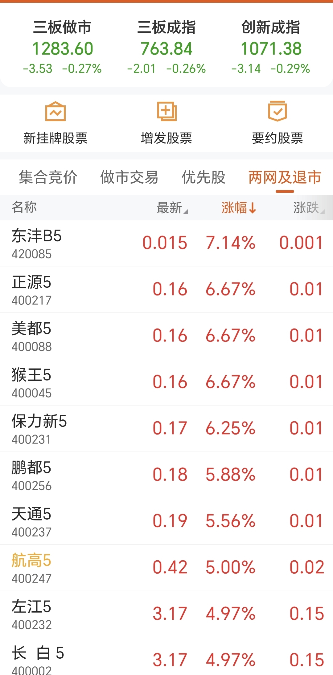 老三板迎来大爆发,今天除了退市不久的元成5,其余能交易的全部上涨!祝贺坚持到现在