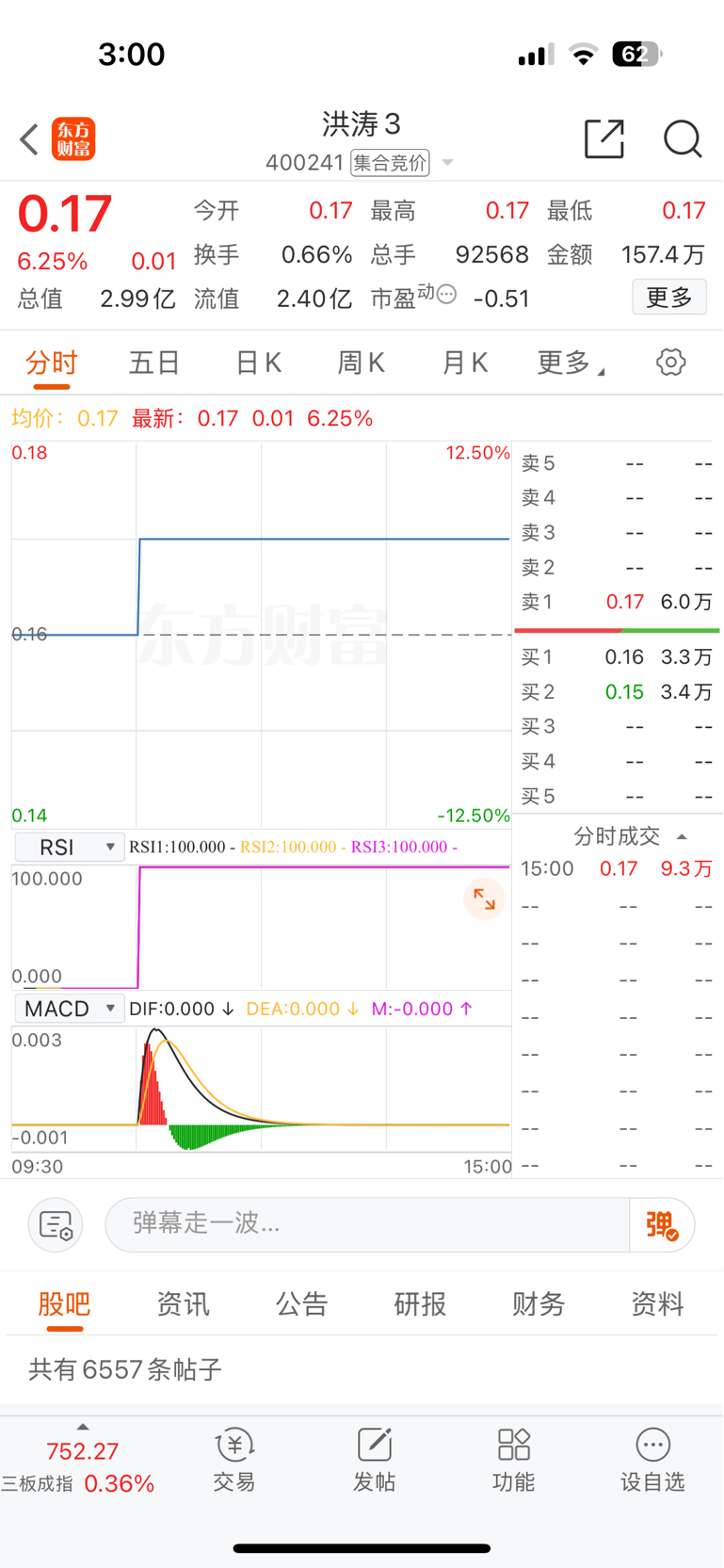 $洪涛3(SZ400241)$ 最后6万手卖单,卖盘枯竭,今后一马平川,和左江共振,接替左江大帝,拉100个涨停板